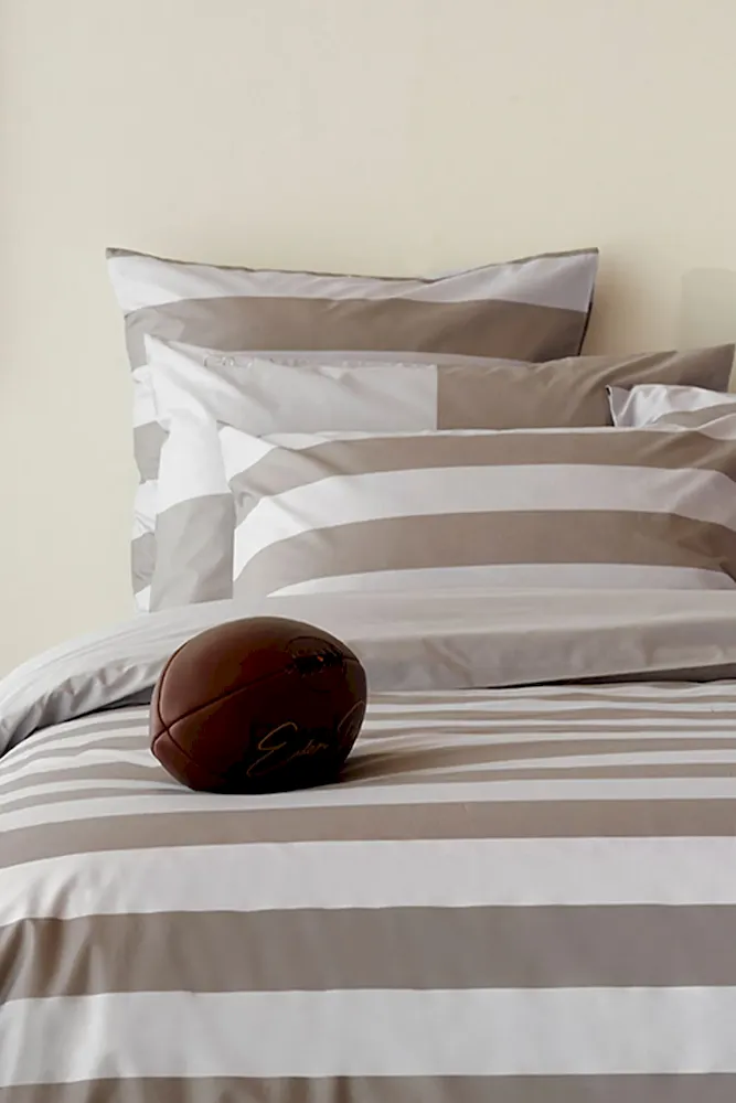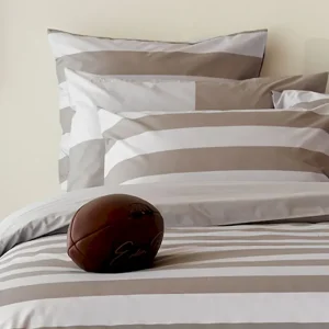 2 taies d’oreiller carrés à rayures beige – A la recherche du ballon perdu