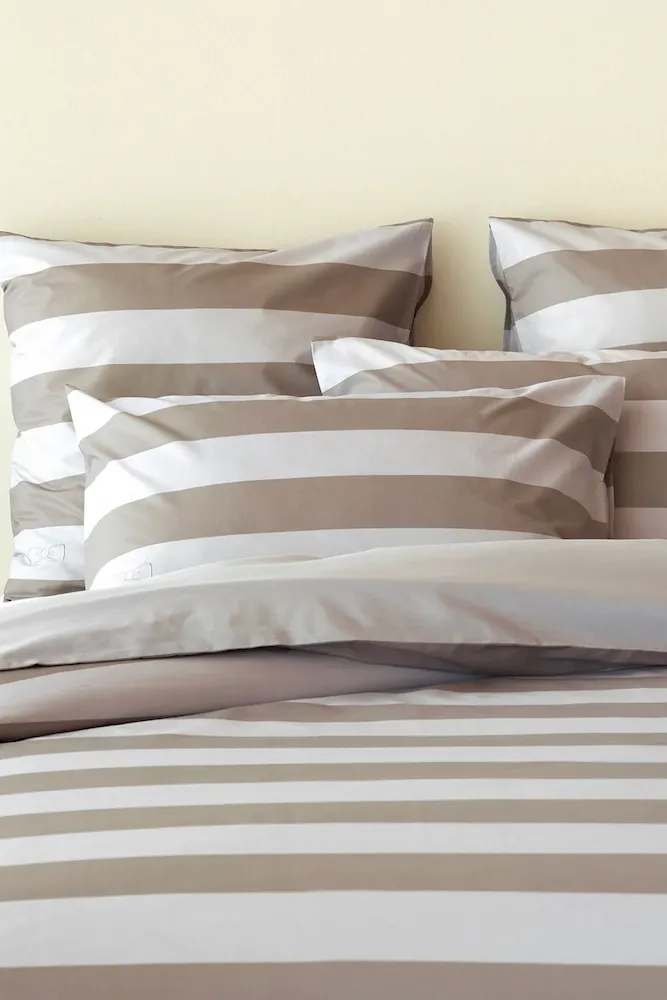 2 taies d'oreiller carrés à rayures beige - A la recherche du ballon perdu