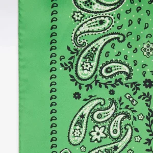 Idéal pour parfaire une tenue avec élégance, ce foulard à motif bandana, dans lequel se cache notre emblème, est réalisé dans un luxueux twill de soie pour un porter léger et confortable. Noué dans les cheveux, autour du cou ou pourquoi pas sur votre sac, ce foulard ne vous quittera plus. Sa finition roulottée et son format carré en font un accessoire au chic discret facile à porter au quotidien. Offert en beige champagne ou en vert.