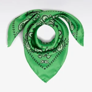 Idéal pour parfaire une tenue avec élégance, ce foulard à motif bandana, dans lequel se cache notre emblème, est réalisé dans un luxueux twill de soie pour un porter léger et confortable. Noué dans les cheveux, autour du cou ou pourquoi pas sur votre sac, ce foulard ne vous quittera plus. Sa finition roulottée et son format carré en font un accessoire au chic discret facile à porter au quotidien. Offert en beige champagne ou en vert.