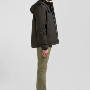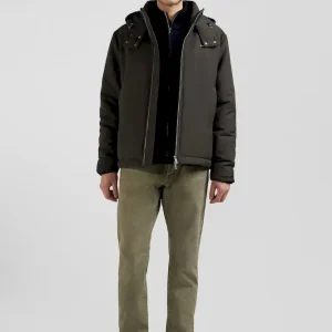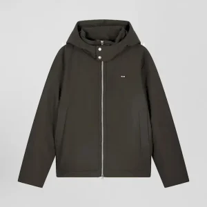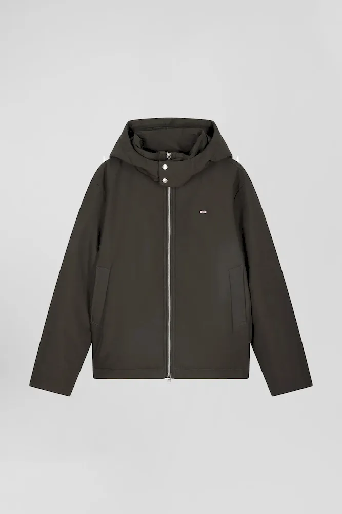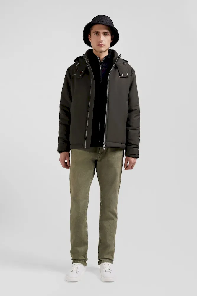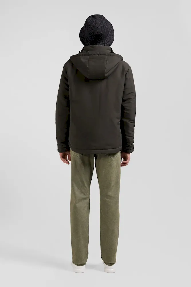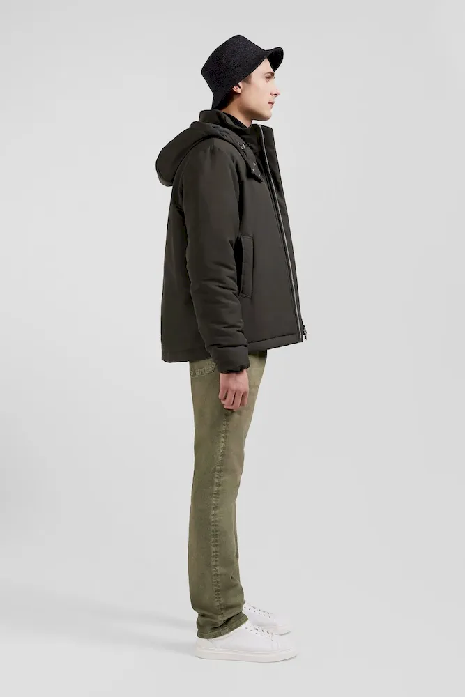 Découvrez l’alliance parfaite de fonctionnalité et de style avec ce blouson en nylon au toucher peau de pêche. Complété par une capuche fixe à fermeture pression et une doublure nylon unie, ce blouson homme assure confort et protection. Son zip double curseur siglé et ses poches passepoilées s’associent à deux poches intérieures zippées pour une praticité maximale. Les manches sont rehaussées de bords-côtes tricotés.