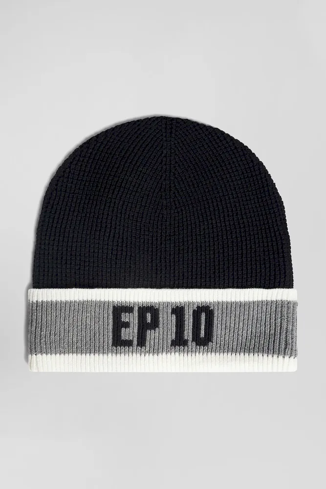 Optez pour un style unique avec notre bonnet en coton tricoté distingué par un revers rayé, une broderie nœud papillon et son inscription jacquard EP10. Une touche sport chic mais également un rappel du numéro de maillot porté par notre fondateur Franck Mesnel. Ce design intemporel, combinant confort et caractère, apportera une signature singulière à votre vestiaire hivernal.