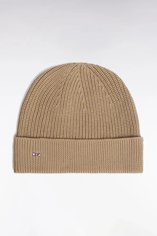Alliance de confort et de style pour ce bonnet en maille torsadée, tricoté dans un coton pur doux et respirant. Son revers structure la silhouette avec modernité, tandis que le nœud papillon brodé sur le côté signe discrètement cet accessoire automne – hiver intemporel