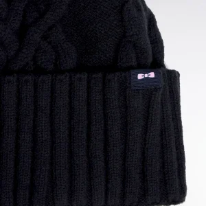 Avec sa maille torsadée au relief délicat, ce bonnet mêle chaleur et authenticité. Tricoté en coton mélangé, il se décline en écru ou en marine pour s’adapter à tous les styles. Son revers tricoté est discrètement orné d’une griffe à l’emblème de notre Maison de mode : le nœud papillon rose