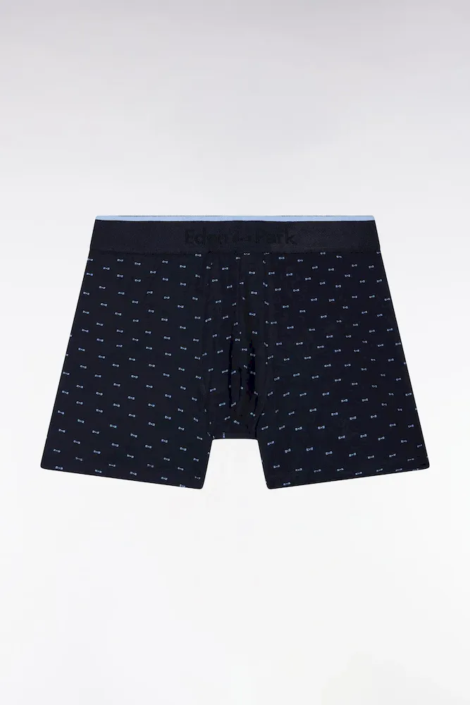 Graphique et discret, ce boxer en jersey de coton stretch s’anime d’un micro-motif nœud papillon, emblème de la maison. Sa coupe ajustée et sa bande élastiquée siglée assurent confort et maintien au quotidien, dans le plus pur esprit sport-chic Eden Park