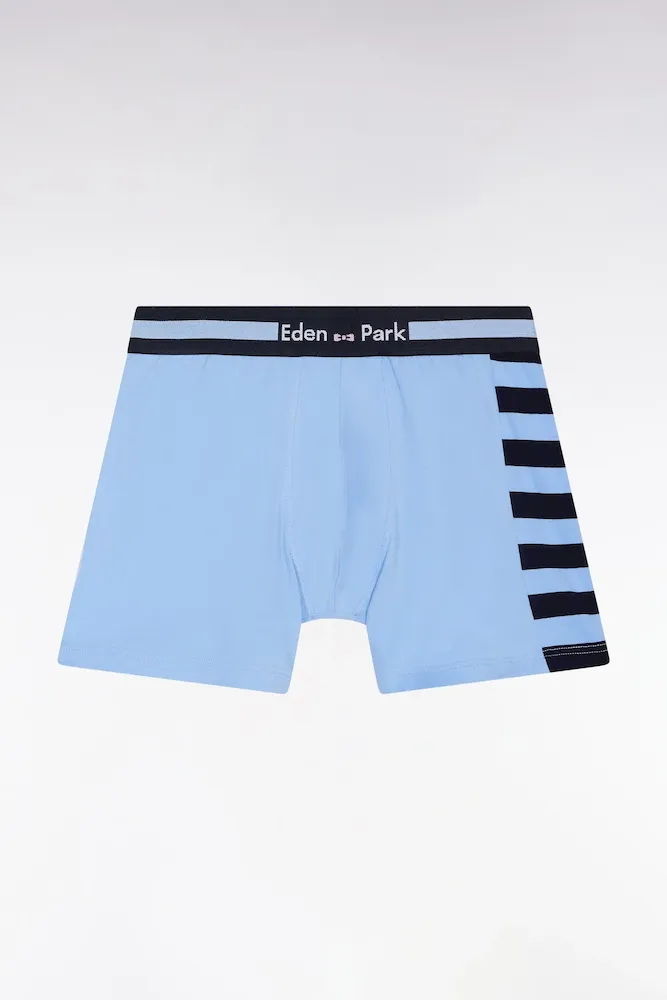 Clin d’œil subtil aux codes rugby, ce boxer en jersey de coton stretch joue la carte du contraste avec ses rayures marine placées sur le côté. Maintien parfait et confort seconde peau grâce à sa coupe ajustée et sa bande élastiquée siglée Eden Park