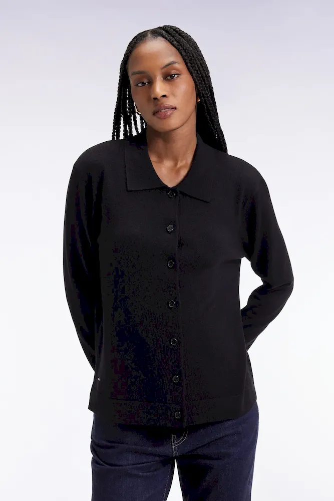 Tricoté dans une laine mérinos aux multiples propriétés (douce, hypoallergénique et thermorégulatrice), ce cardigan femme conjugue douceur enveloppante et légèreté naturelle. Sa ligne sobre, soulignée par son col classique et sa broderie nœud papillon discrète en bas de pièce, en fait une élément clé du vestiaire féminin. Superposé sur une chemise oversized pour une silhouette jouant sur les volumes ou porté à même la peau, ce cardigan boutonné s’adapte à toutes les envies de style. Un basique luxueux offert dans en coloris marine, bordeaux ou noir pour composer une infinité de silhouettes dès l’arrivée de l’automne.