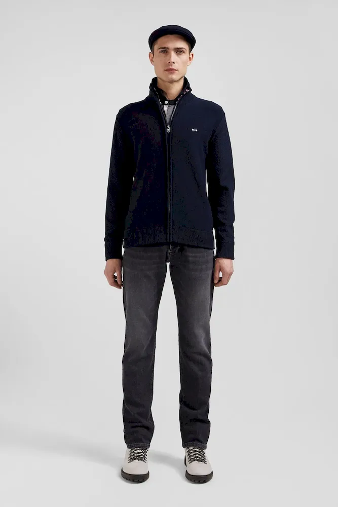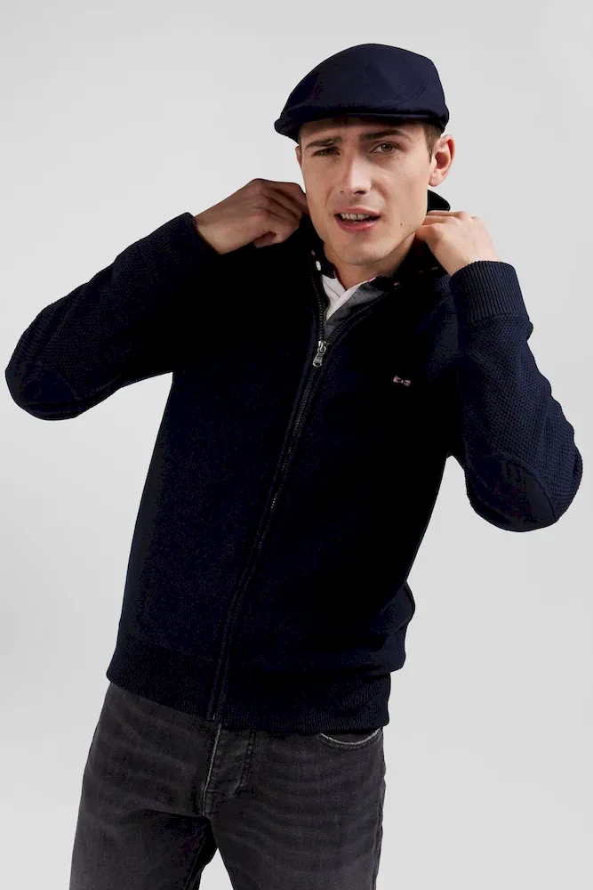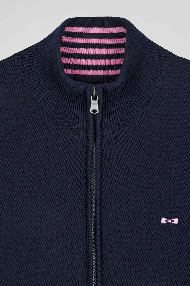Cardigan en coton avec broderie au dos bleu marine
