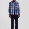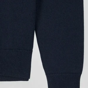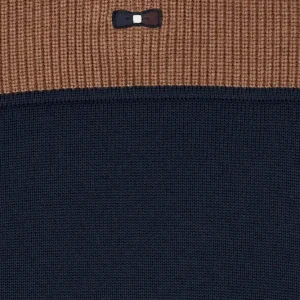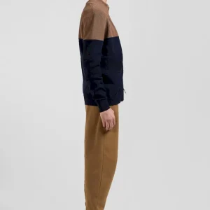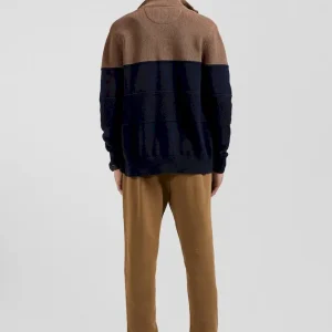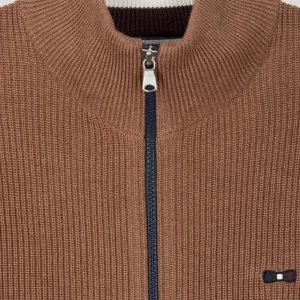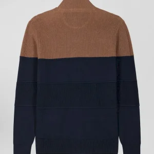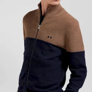 Cardigan zippé à col montant marine et noisette en coton