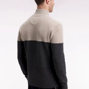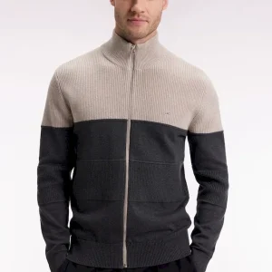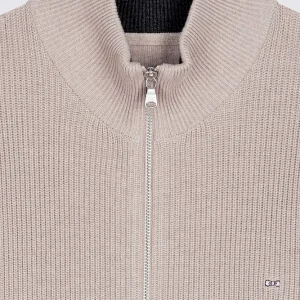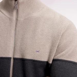 Ce cardigan zippé à col montant se distingue par son jeu de contrastes et de découpes subtiles. Bicolore, la maille alterne avec finesse les côtes anglaises et le jersey pour apporter du relief à la silhouette, sans en faire trop, un effet de rayure mis en valeur par la présence d’une jonction passepoilée. La broderie nœud papillon rose sur la poitrine signe cette pièce fidèle à l’héritage sport-chic de notre maison