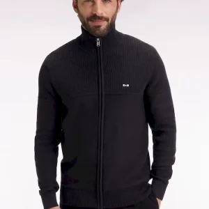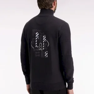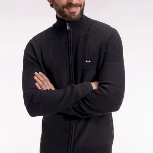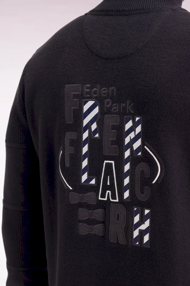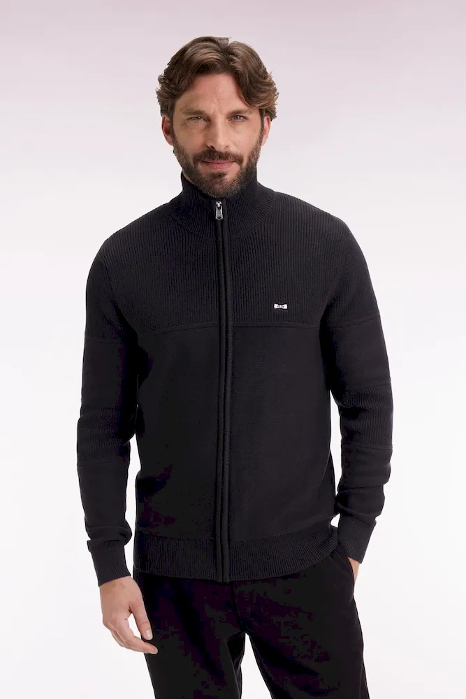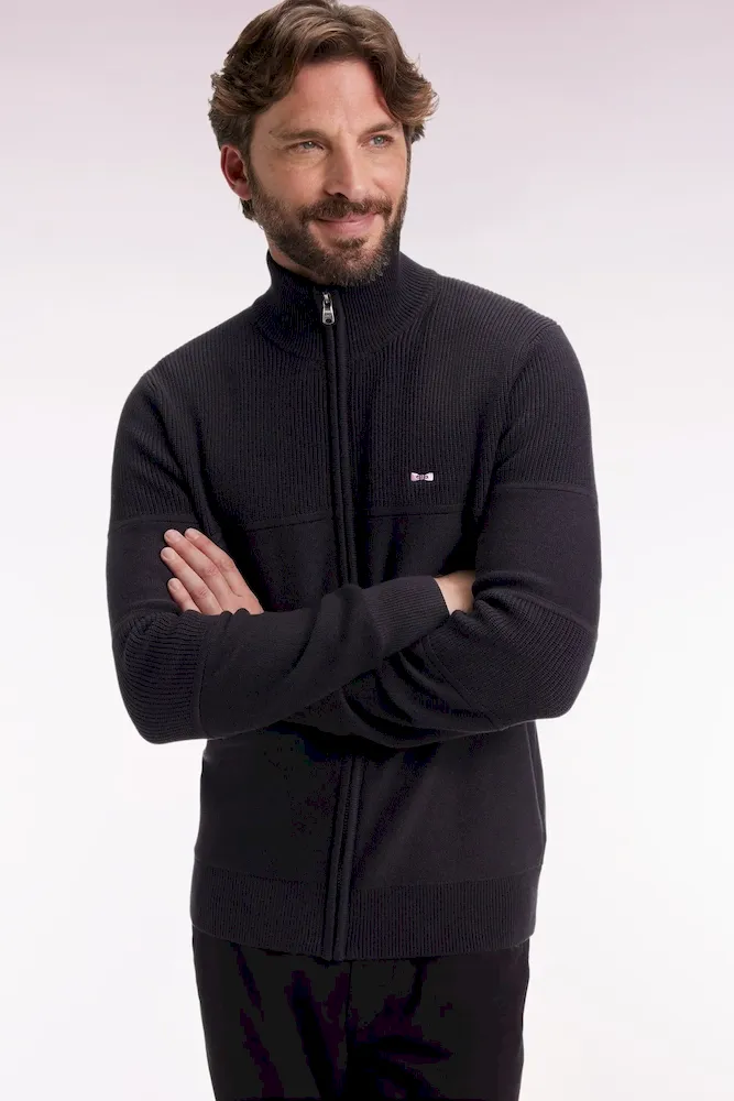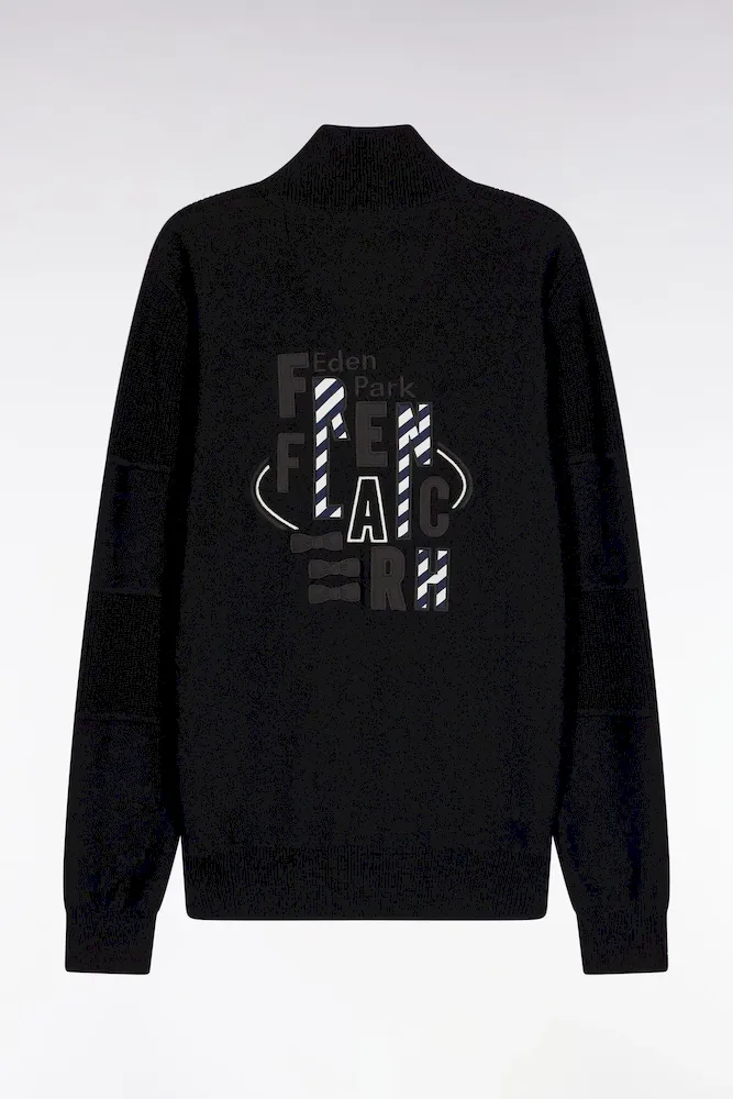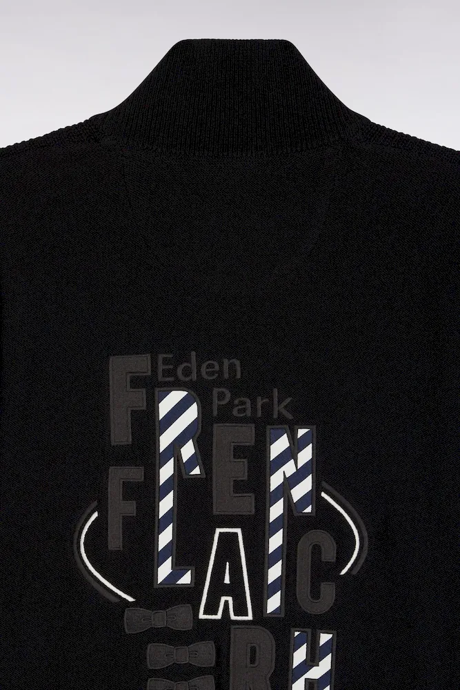 Cardigan zippé en coton noire broderie dos