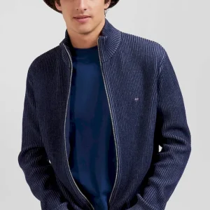 Notre cardigan pour homme zippé, alliant laine et coton, offre un confort de porté optimal. Sa coupe Regular droite et son zip gris sont mis en valeur par un tricotage créant un effet de rayures verticales, pour un style moderne aux inspirations sportives. Offert dans trois coloris intemporels, ce cardigan zippé s’accorde parfaitement au vestiaire masculin imaginé par Eden Park pour l’automne-hiver.
