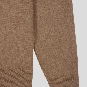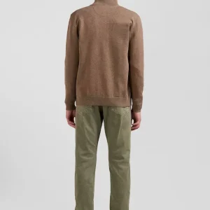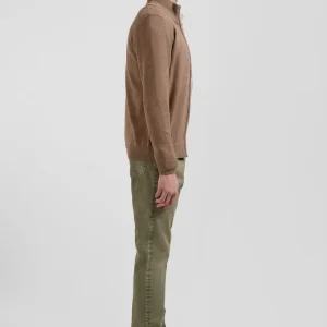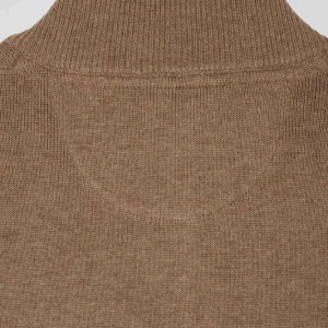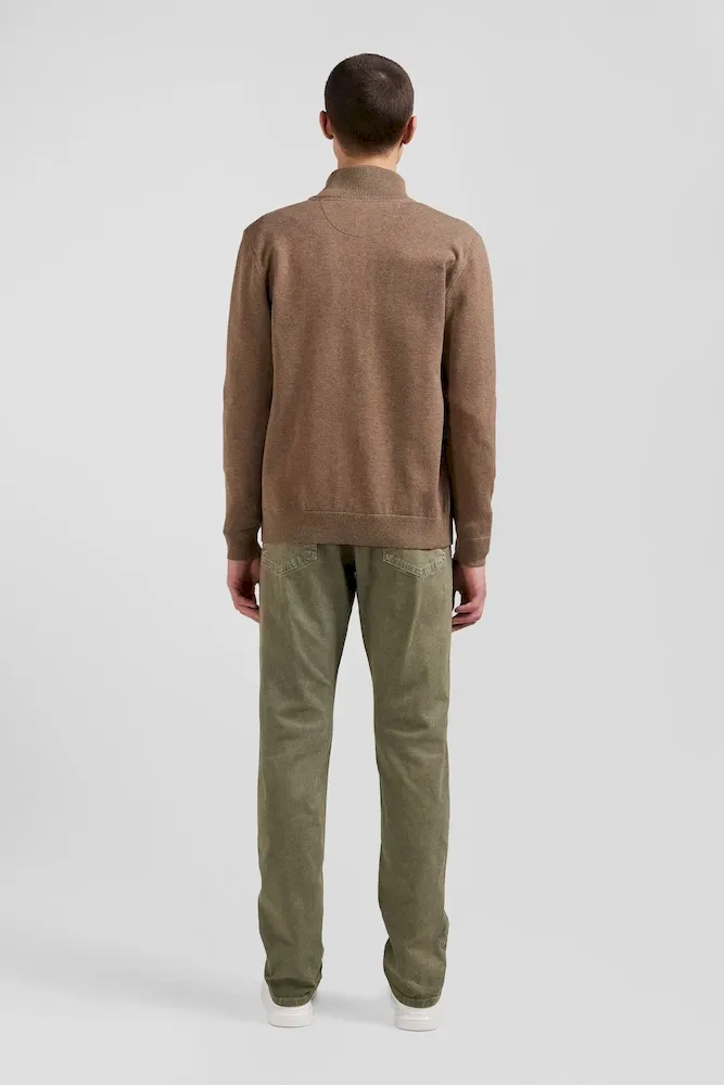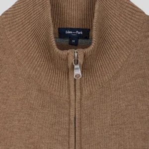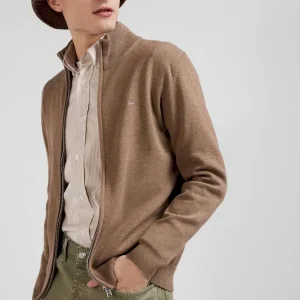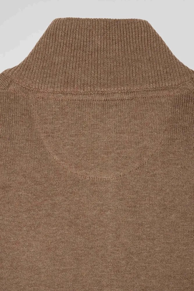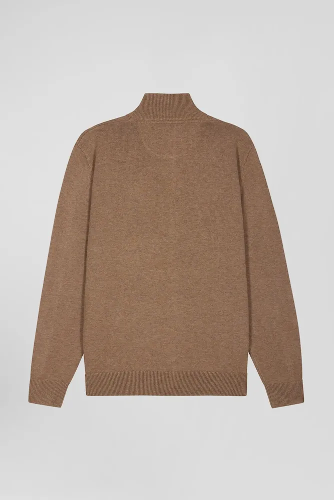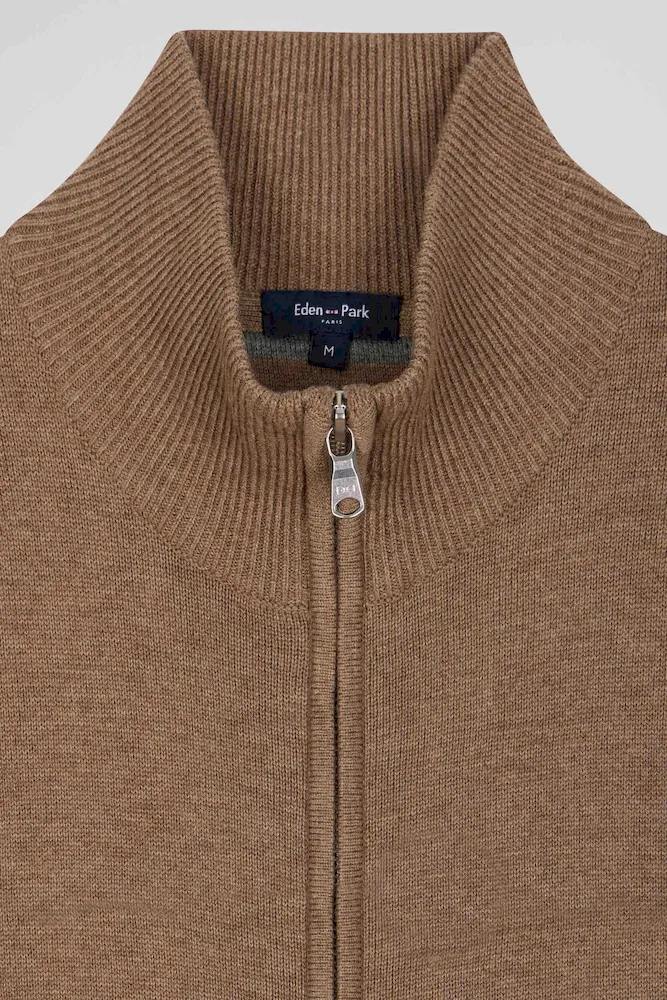 Cardigan zippé en laine et coton uni camel