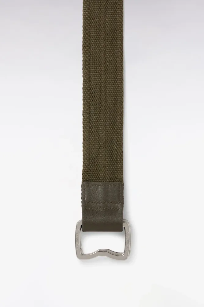 Cette ceinture en textile coton et cuir apporte une touche authentique à une silhouette décontractée. Elle se distingue par sa boucle en métal argenté dont la forme est directement inspirée de notre emblème : le nœud papillon. Bermuda ou chino vous assureront d’un tomber impeccable accessoirisés de cette ceinture homme offerte en marine ou en kaki.