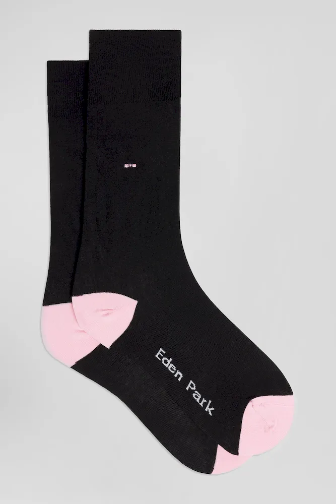 Derrière leur sobriété, ces chaussettes pour homme unies cachent une pointe et un talon colorés. Une note contrastée qui apporte une touche d’audace maîtrisée à un modèle classique. Sur la cheville, une petite broderie nœud papillon réalisée au fil rose souligne l’appartenance de cet accessoire au vestiaire Eden Park