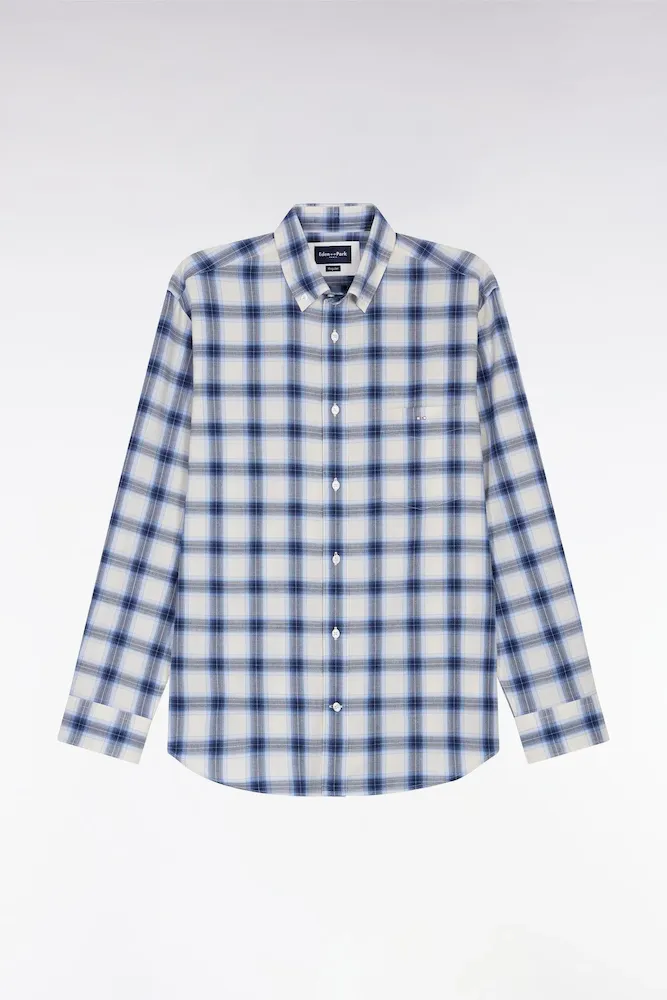 Intemporel du vestiaire masculin, cette chemise à carreaux en coton doux séduit par son confort et ses finitions soignées. Déclinée en bleu ciel, gris ou rose, elle se distingue par sa coupe droite facile à porter et son col boutonné qui structure la silhouette tout en mettant en valeur le port de tête. La poche poitrine brodée de l’emblème nœud papillon signe discrètement son appartenance à la notre maison française