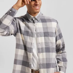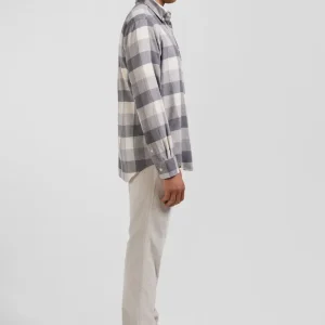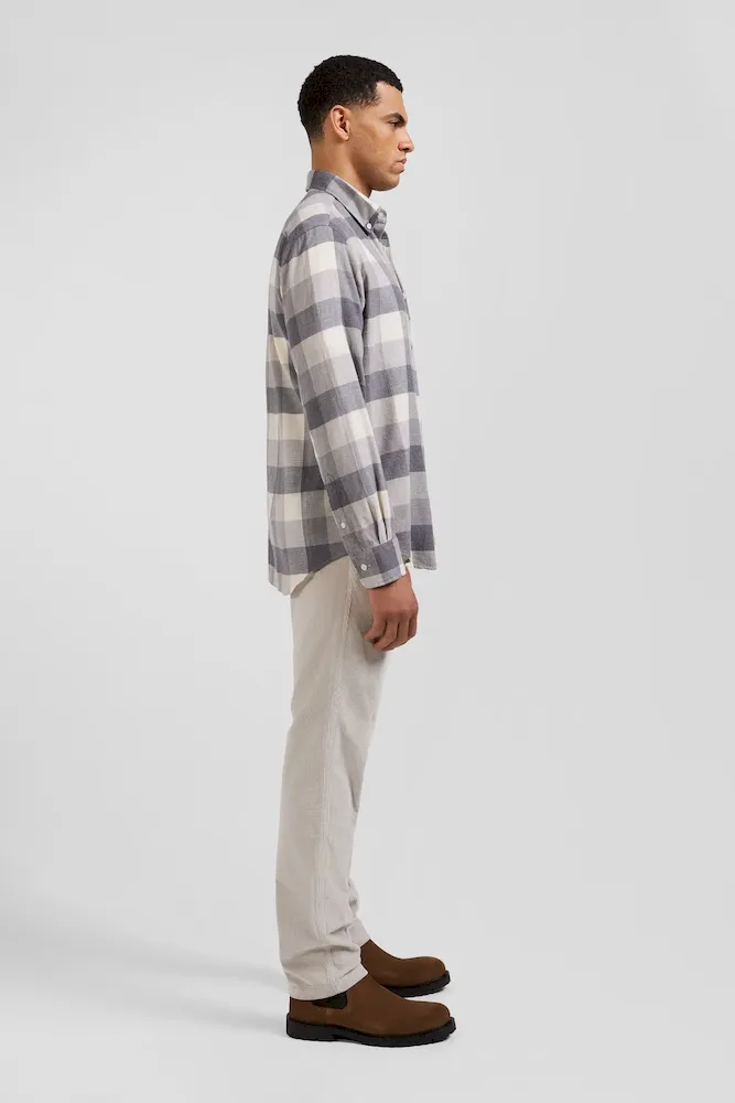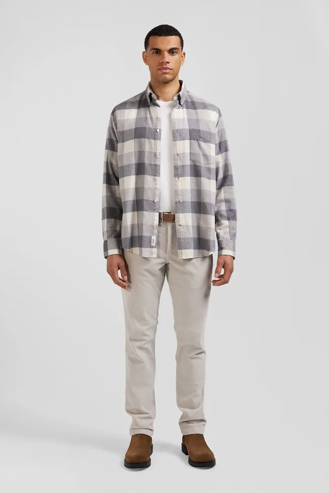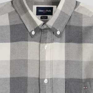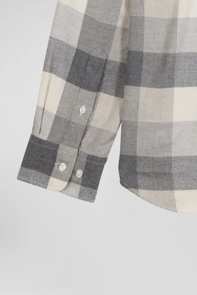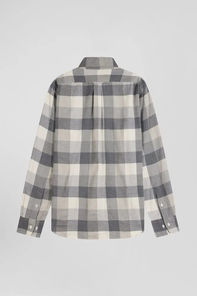 Chemise à carreaux en coton gris chiné coupe Regular