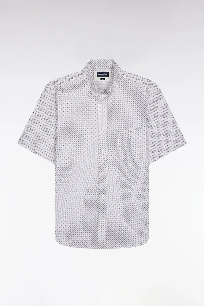 Cette chemise à manches courtes écrue séduit par ses micro-motifs nœuds papillon, signature de la maison affichée avec subtilité. Sa coupe droite et sa poche plaquée renforcent une allure casual chic, parfaite pour traverser l’été avec élégance et décontraction