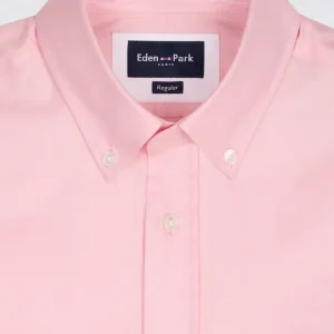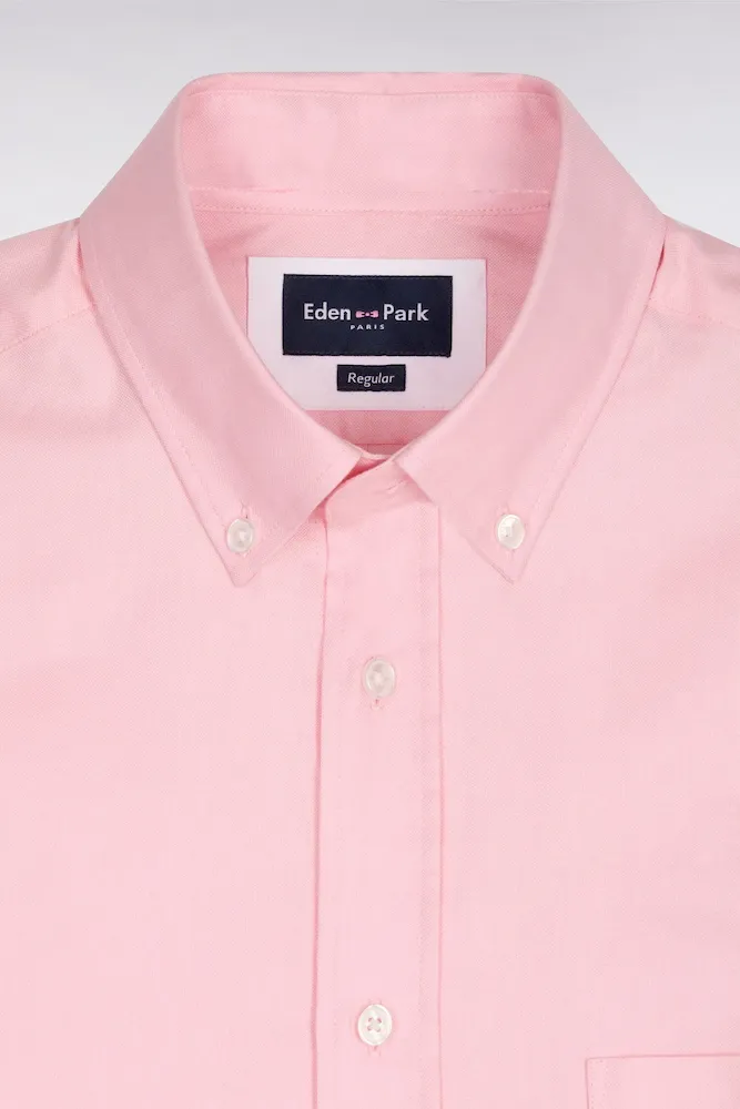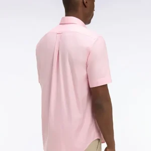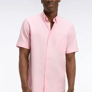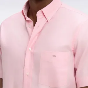 Chemise à manches courtes en coton fil teint rose