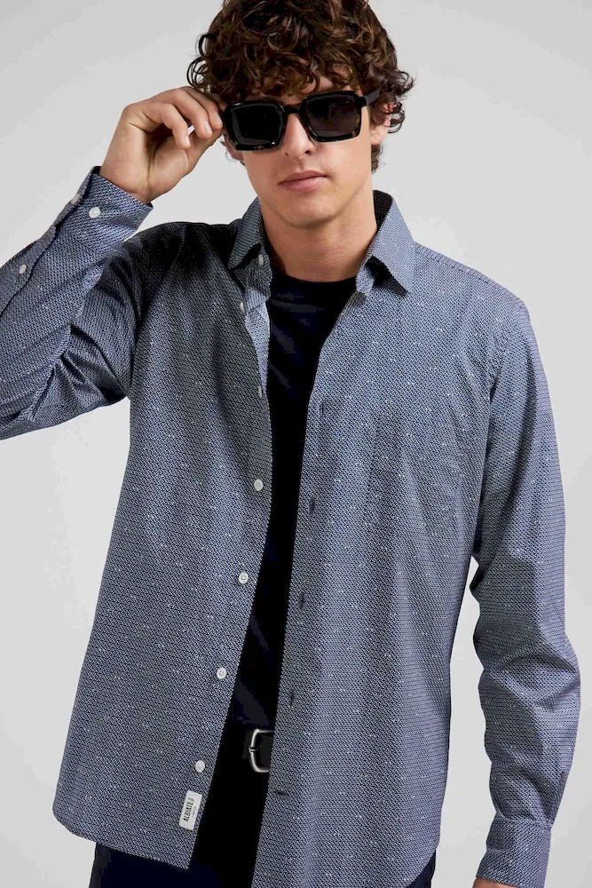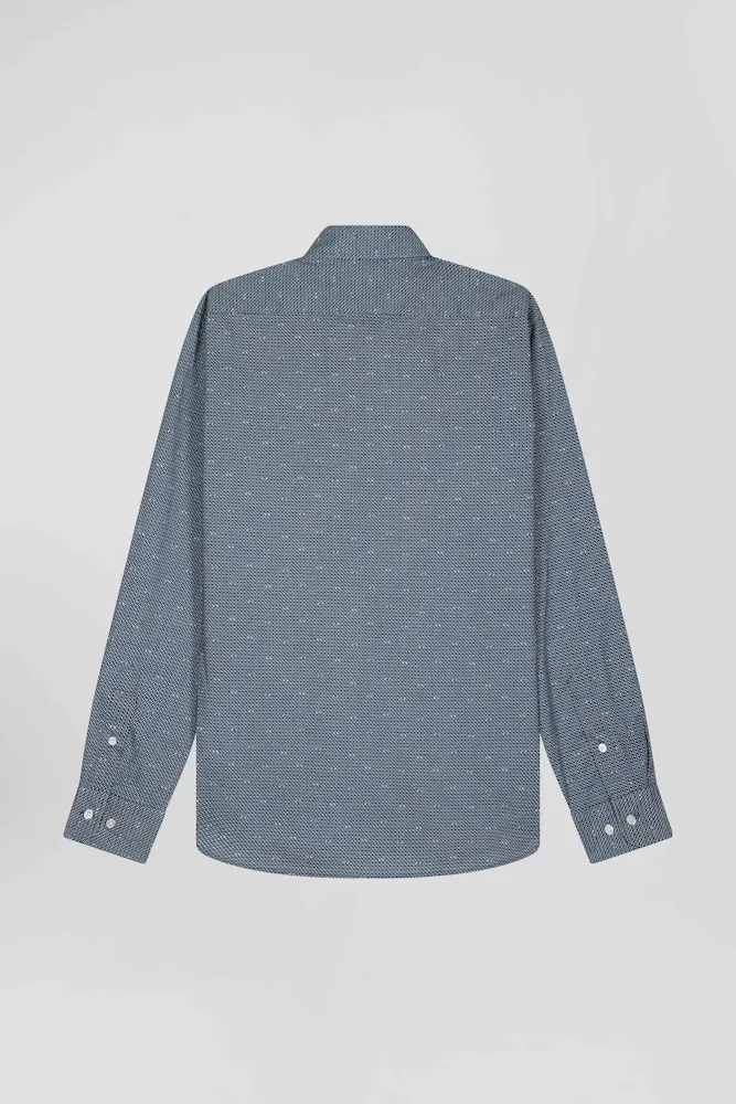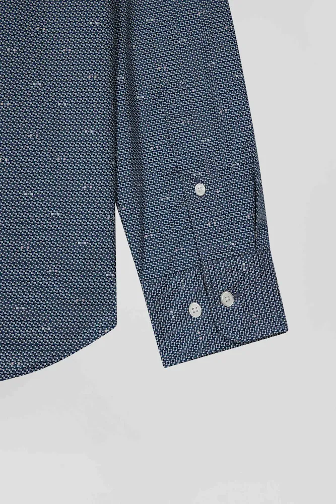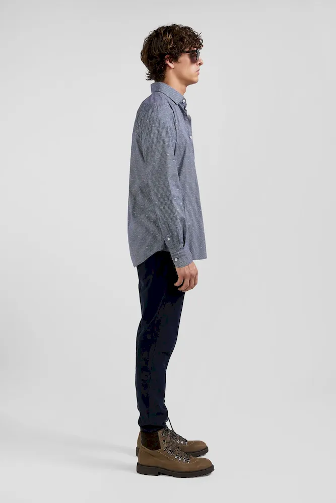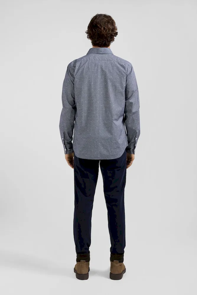 En journée ou à l’occasion d’une soirée, optez pour une touche d’élégance discrète avec notre chemise coupe Slim en coton bleu marine, agrémentée de délicats micro-motifs. Dotée d’une poche poitrine pratique, cette chemise en coton seyante et intemporelle allie style moderne et confort classique.