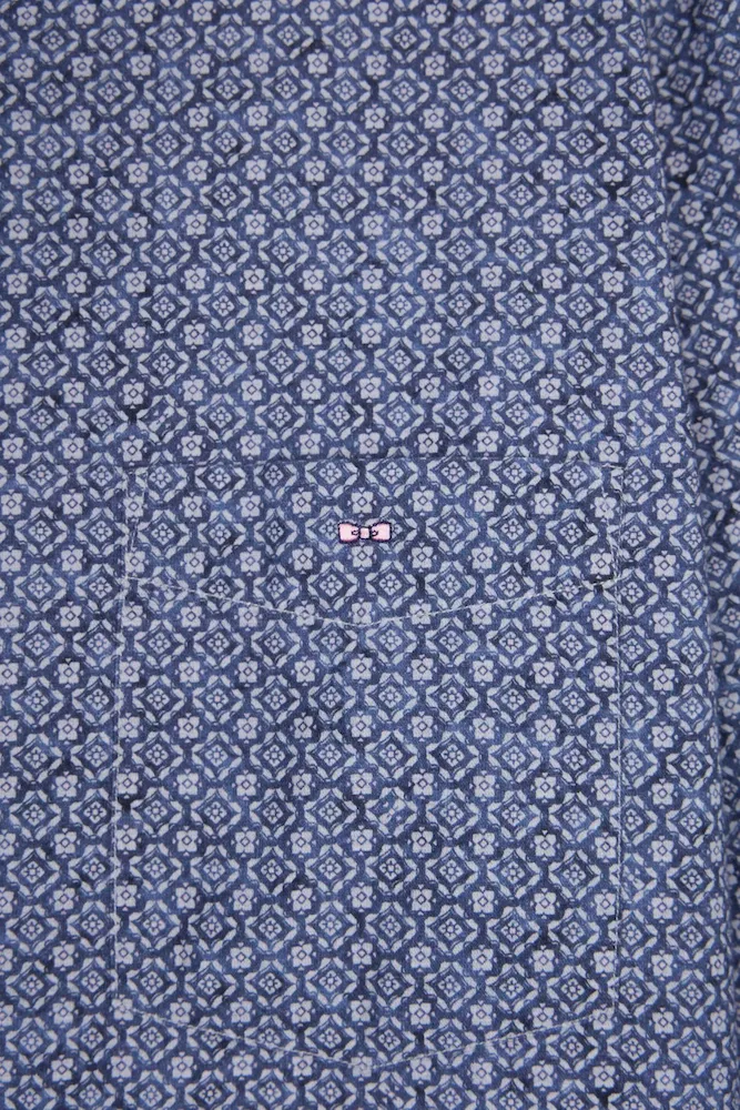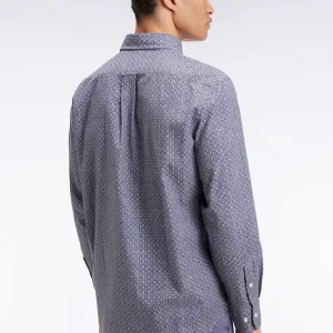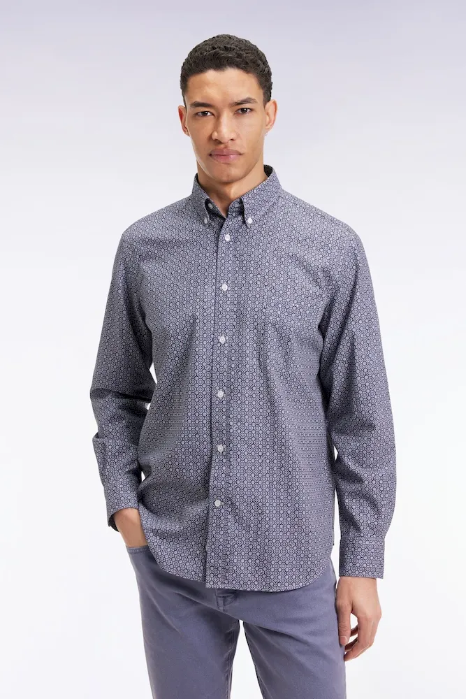 La signature Eden Park ? Des pièces mode durables et fonctionnelles, bien pensées, toujours impeccablement exécutées. Chaque micro-motif décliné en imprimé chemise est exclusivement dessiné pour notre maison française. Avec cette élégante chemise marine vous êtes donc assuré d’affirmer votre style. Jean ou pantalon de toile s’accorderont à merveille à cette pièce élégante au tombé structuré par sa patte de boutonnage apparente et son col à pointes boutonnées des mêmes boutons ovales inspiré de notre passion pour le rugby. Sa coupe droite facilite mouvements et jeux de superposition
