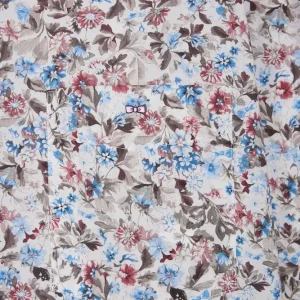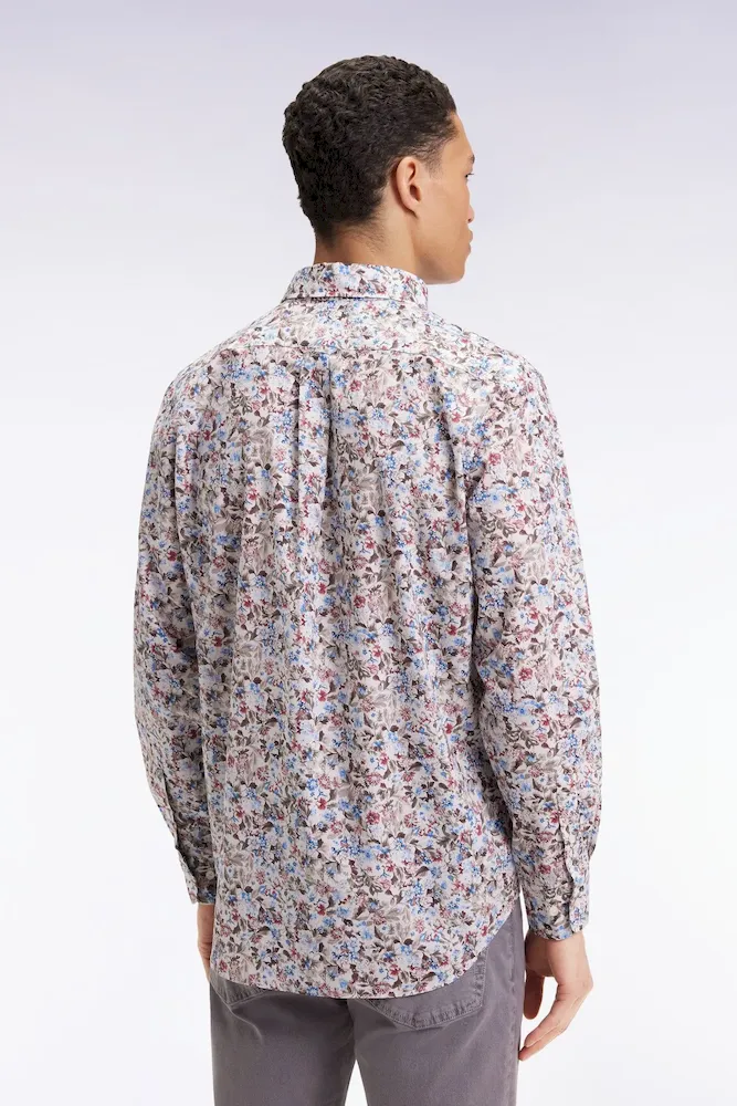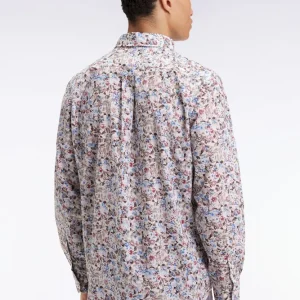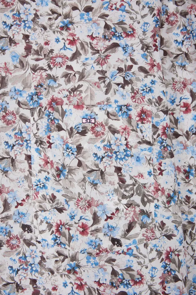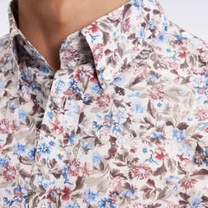 Chemise à micro-motifs fleurs en coton marron coupe droite