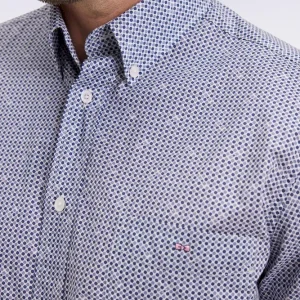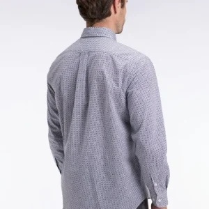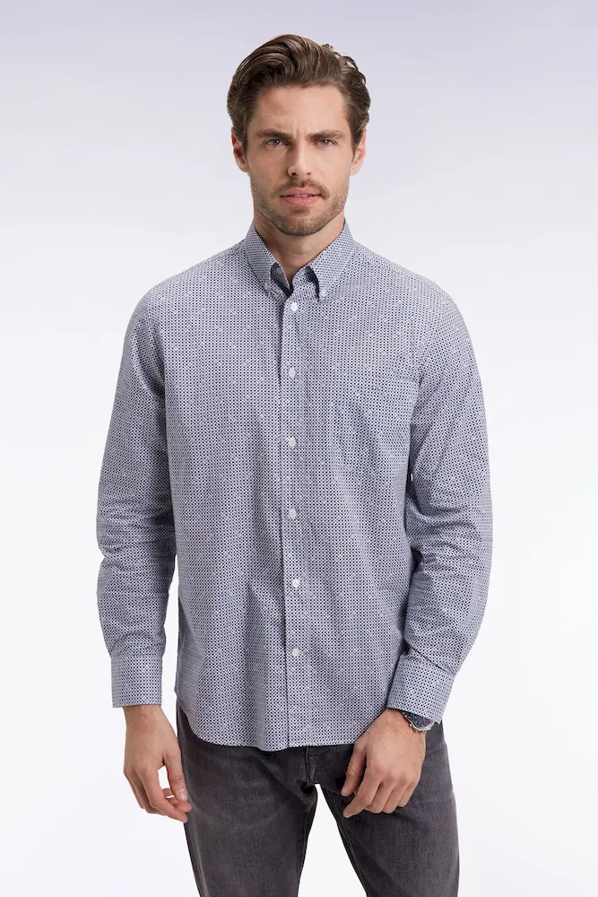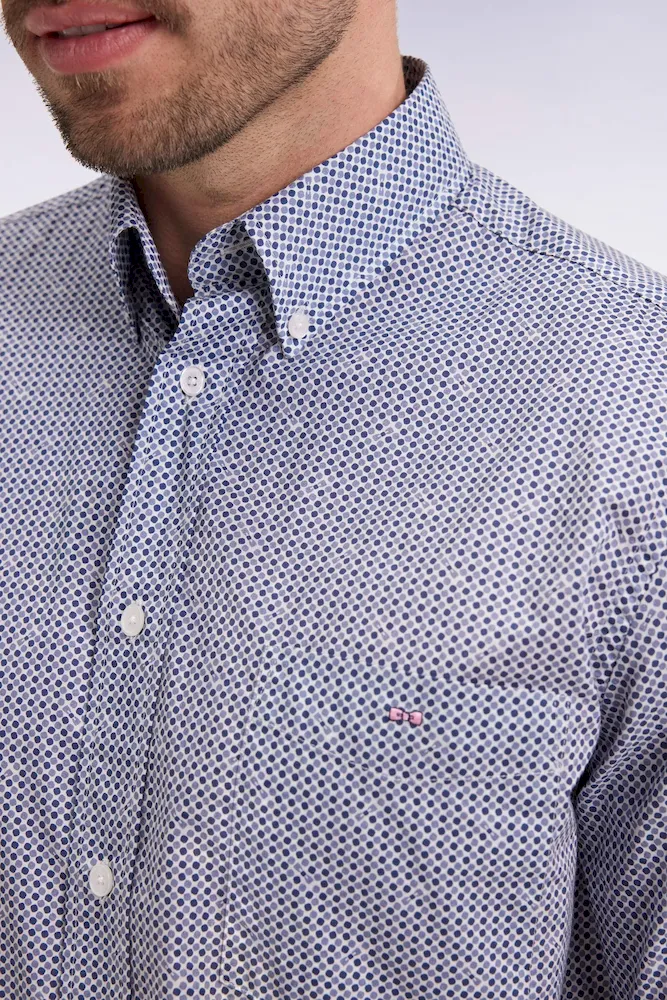 Chemise à micromotifs en coton bleu coupe droite