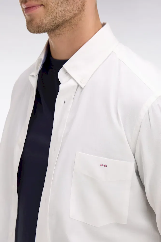 Une élégance maîtrisée pour cette chemise unie réalisée en coton Oxford de qualité. Rehaussé par un petit logo nœud papillon rose brodé sur la poitrine, ce modèle aux finitions soignées habillera d’une touche chic vos pantalons de costumes comme vos chinos retroussés. Il est grand temps de l’adopter.