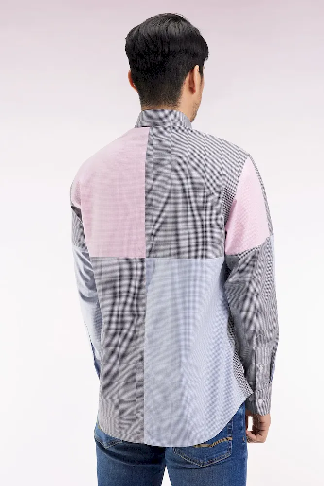 Chemise bleu et rose quatre cadrans coupe droite