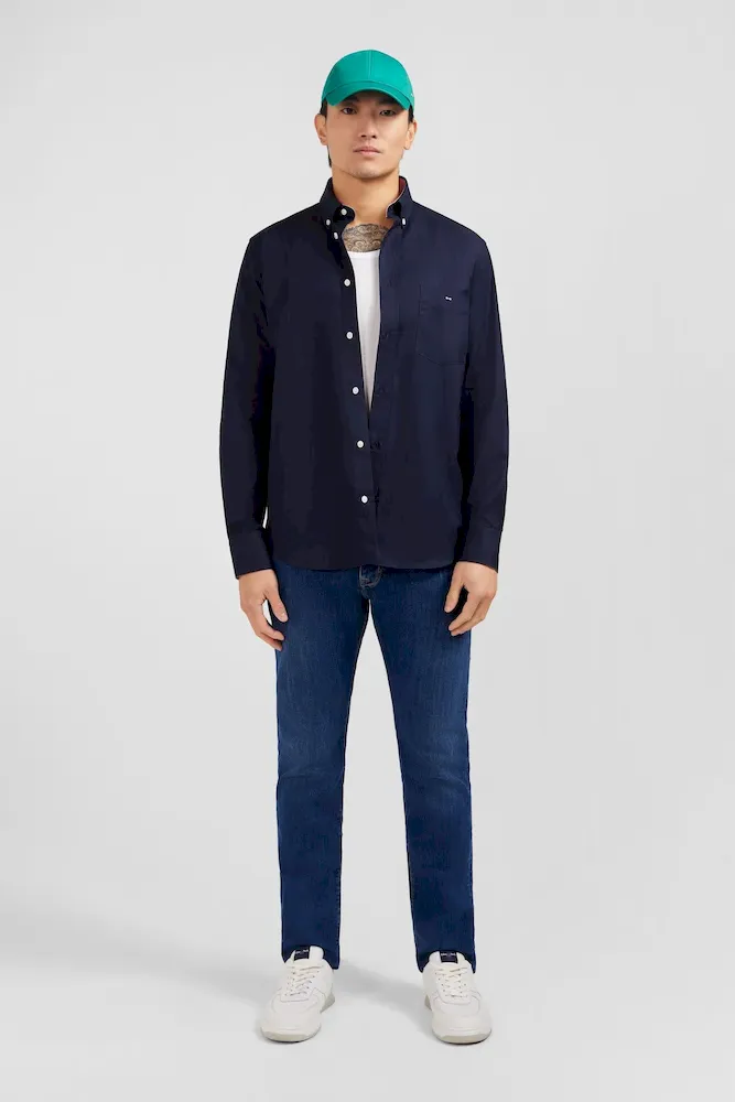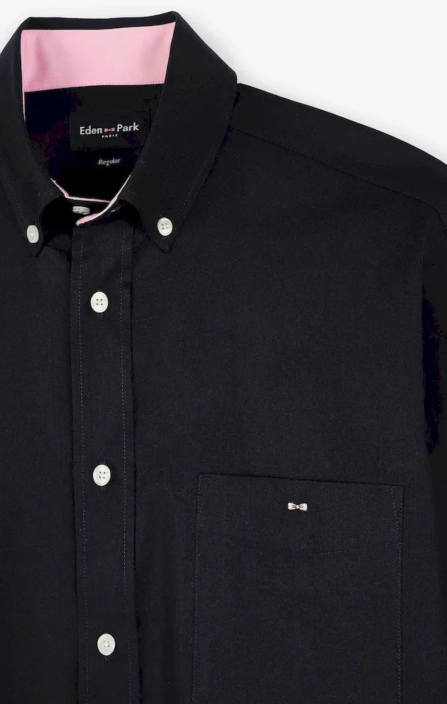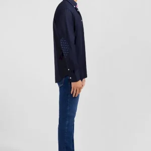 Conçue en twill de coton, cette chemise unie affiche des coudières en tissu cravate imprimées de nœuds papillon. On distingue sur la poitrine une poche plaquée avec broderie nœud papillon