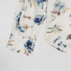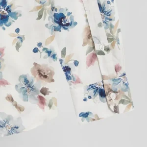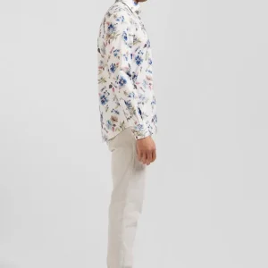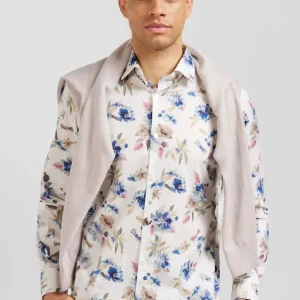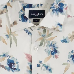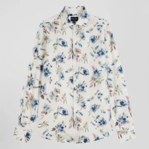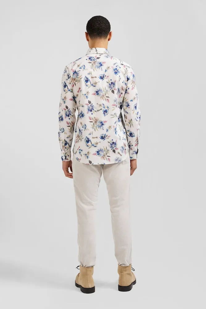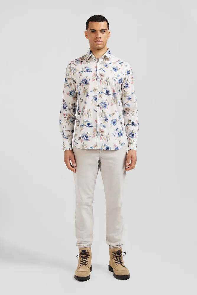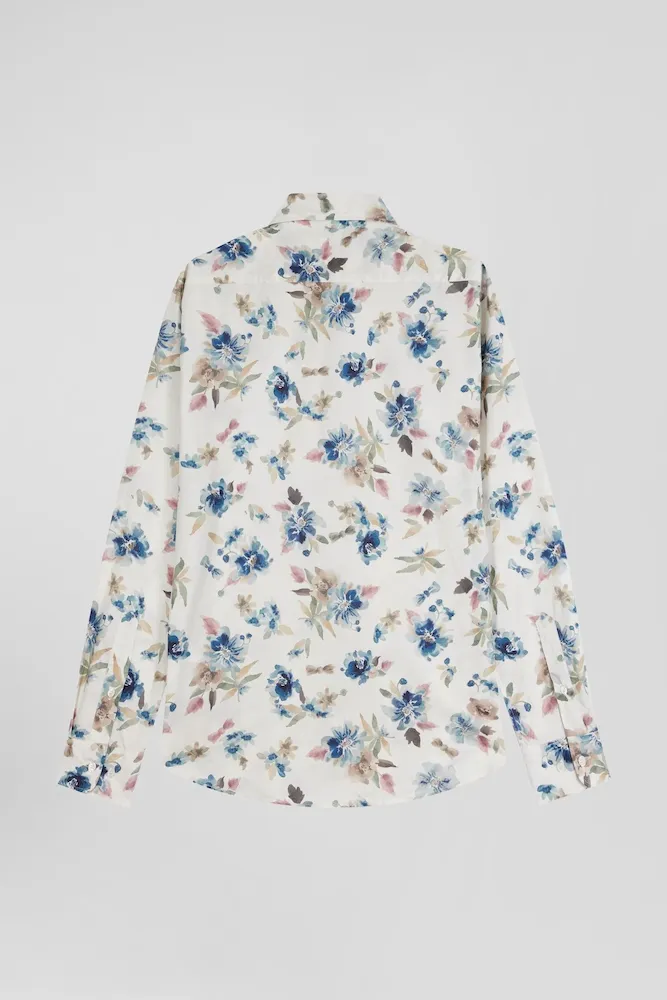 Chemise en coton à imprimé floral écru coupe Slim