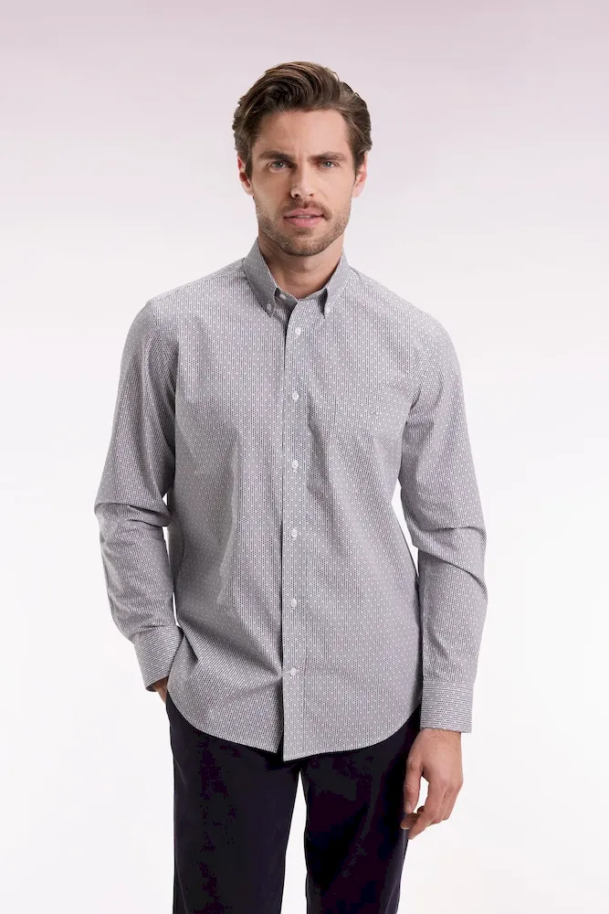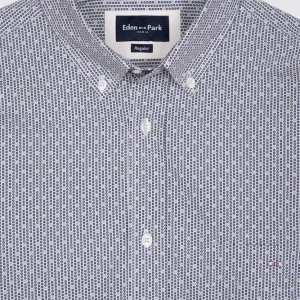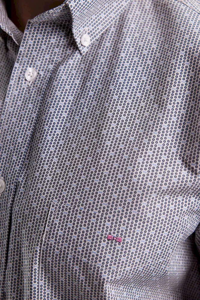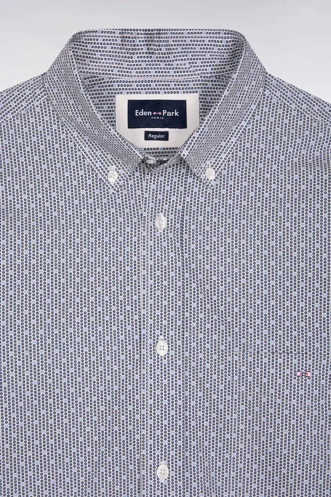 Chemise en coton à micro-motifs nœuds papillon bleus coupe droite