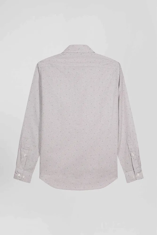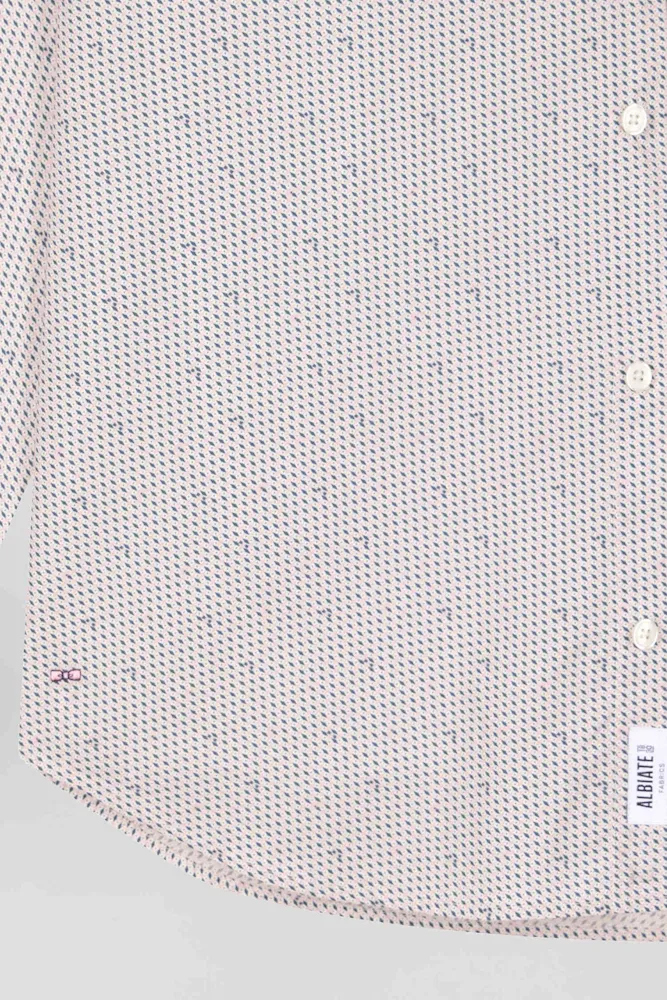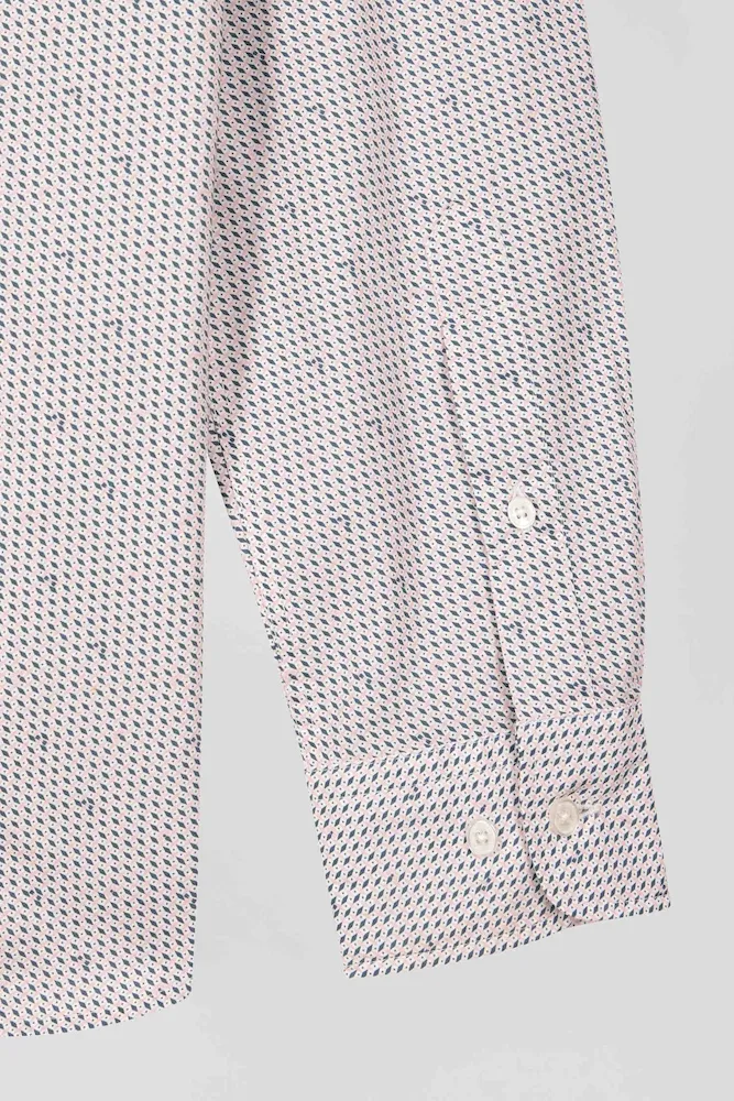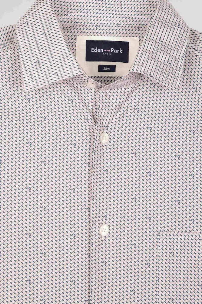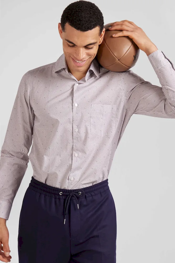 Cette chemise coupe slim en coton rose est rehaussée de micro-motifs graphiques pour une touche contemporaine. Avec sa poche poitrine et sa coupe ajustée, cette chemise homme facile à porter propose un style à la fois sophistiqué et tendance pour le quotidien ou une occasion plus habillée.