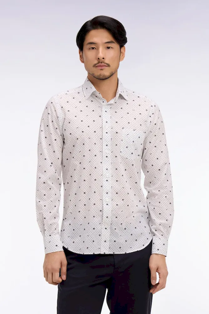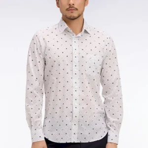 Chemise en coton blanche à micromotifs coupe slim