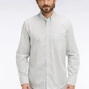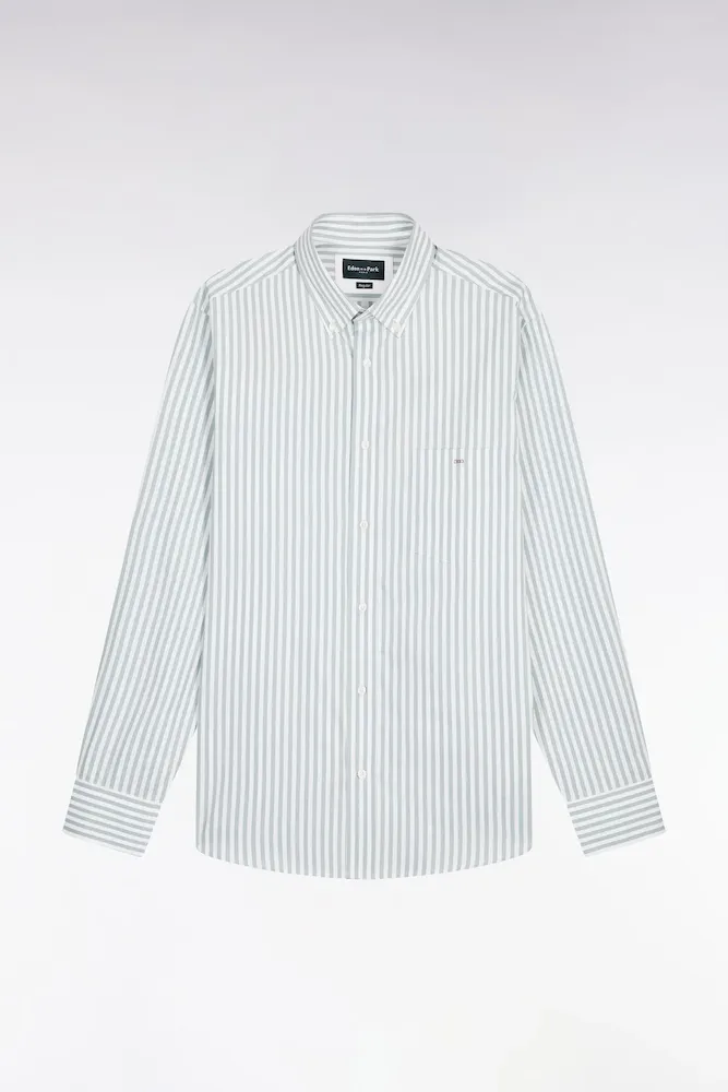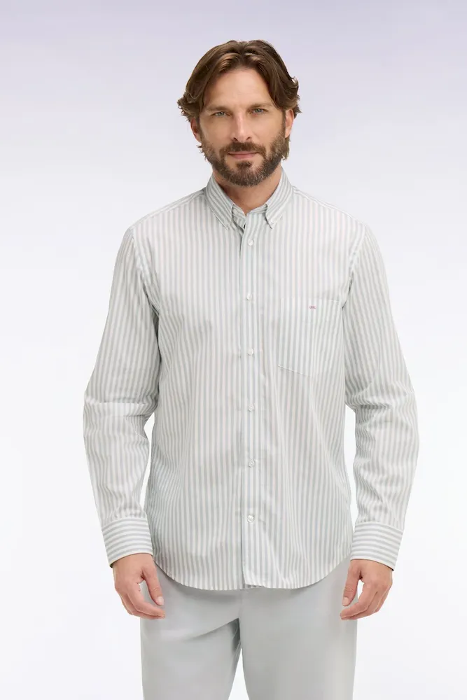 Cette chemise homme en popeline de coton à rayures bâton revisite un grand classique du vestiaire estival avec élégance. Légère et agréable au porté, elle assure une silhouette nette grâce à sa coupe droite et son col à pointes boutonnées. Les rayures verticales allongent la ligne, donnant un style soigné sans effort. La poche poitrine ornée du nœud papillon Eden Park rappelle élégamment l’identité de la Maison, tandis que le pli dos apporte aisance et confort. Parfaite avec un jean clair ou un chino, cette chemise est un indispensable chic et facile à associer. Cet intemporel vous ai proposé dans une grande palette de coloris, des plus classiques aux plus tendance.
