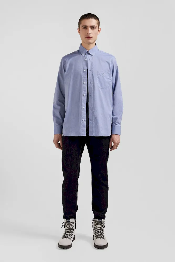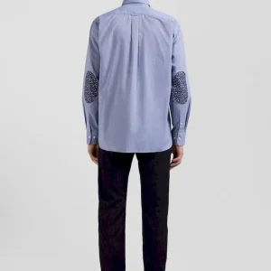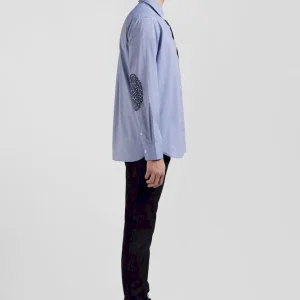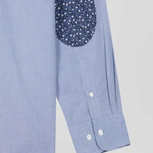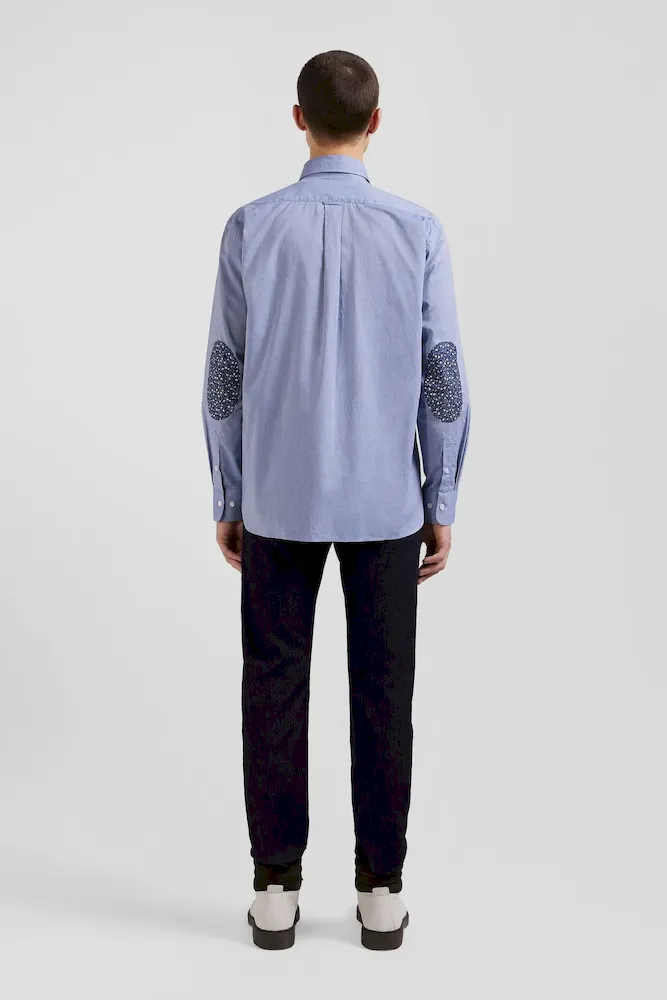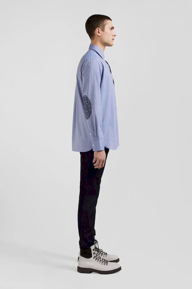 Notre chemise homme en toile de coton denim ciel est rehaussée par des coudières ornées d’un micro-motif floral tendance. Cette chemise bleue allie sophistication et originalité. Portée seule ou ouverte sur un T-shirt blanc en surchemise, elle offre une touche de fantaisie tout en restant classique et adaptée à toutes les occasions.