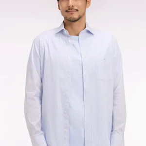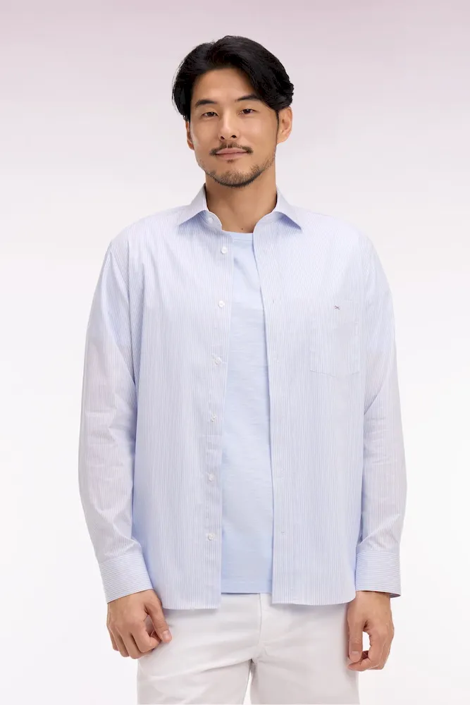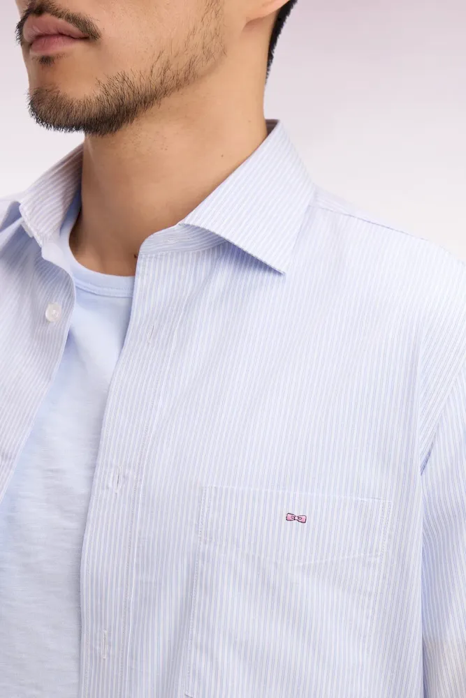 Chemise en coton dobby à rayures ciel coupe regular