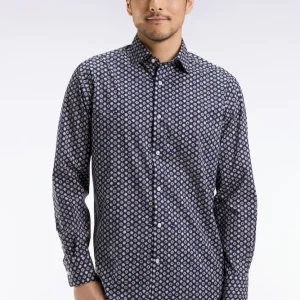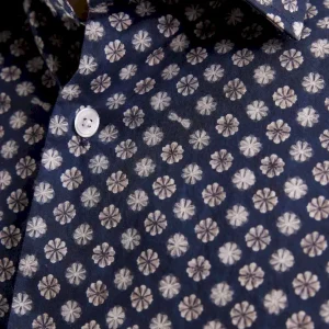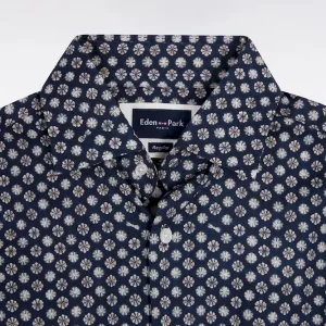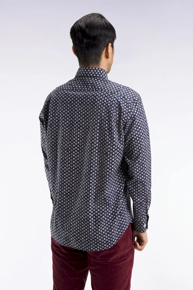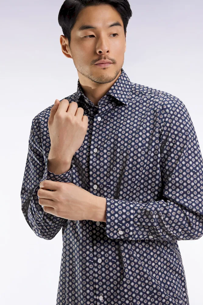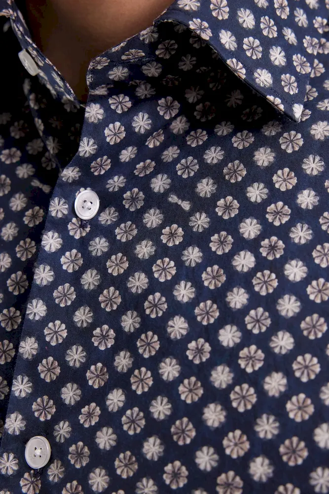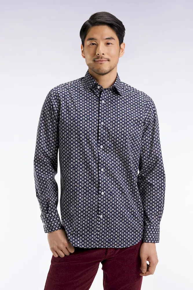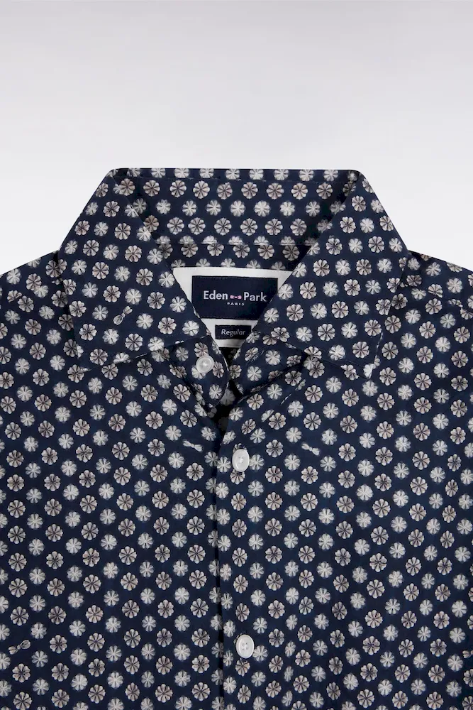 Chemise en coton marine à imprimé floral graphique coupe droite