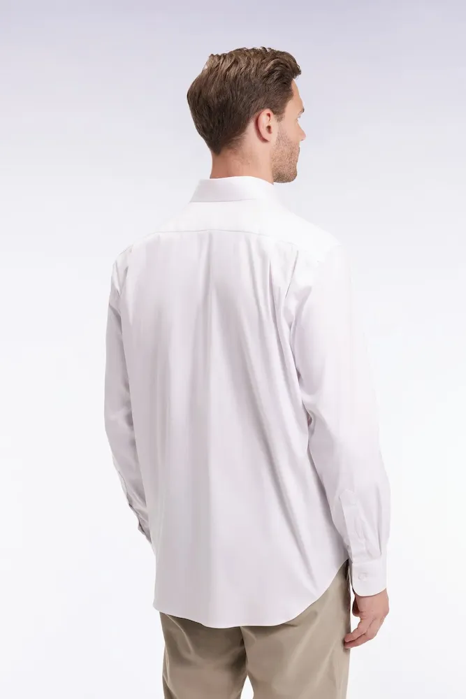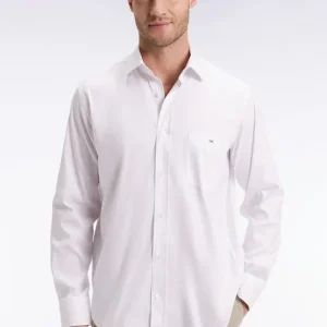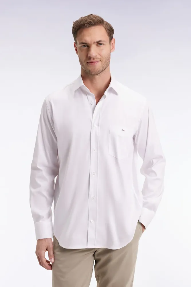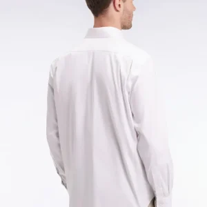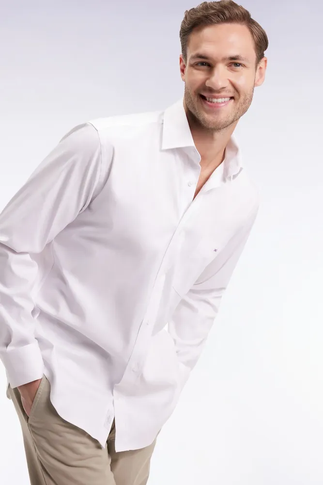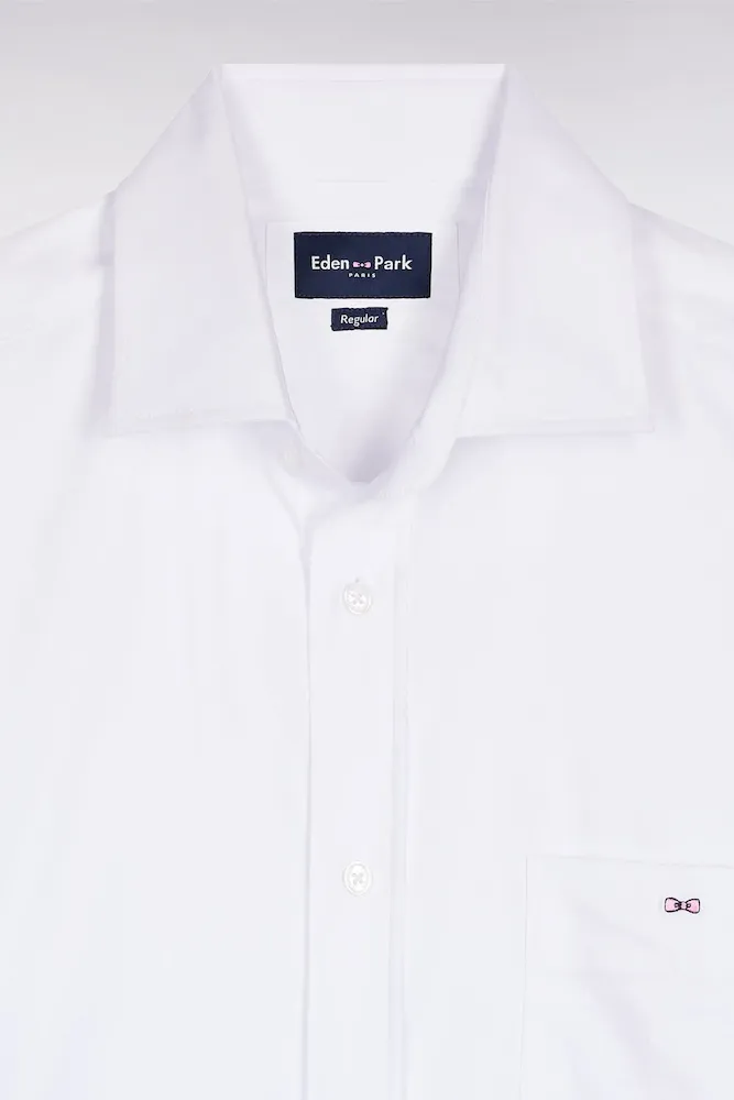 Alliance parfaite entre douceur et sophistication, cette chemise unie réalisée en popeline de coton Pima stretch mélangée arbore un col libre pour plus de décontraction. Sa coupe droite, son double pli d’aisance dans le dos et ses finitions soignées en font une pièce polyvalente, à la fois élégante et facile à vivre. Une broderie nœud papillon rose vient discrètement signer ce modèle intemporel pensé pour accompagner toutes vos silhouettes du quotidien