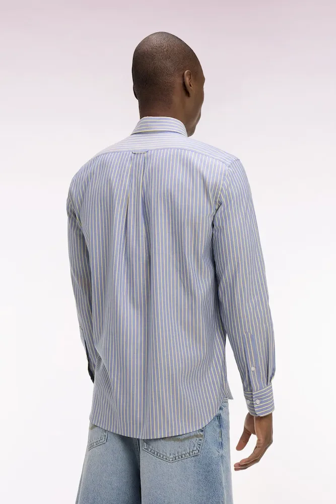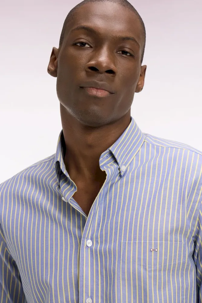Notre chemise en coton pinpoint séduit par son tissage fin et légèrement texturé, offrant un confort frais et une tenue impeccable, même au cœur de l’été. Ses rayures vert d’eau, jaune, rose ou ciel selon le modèle choisi insufflent une élégance lumineuse à votre silhouette, idéale pour la belle saison. Dotée d’une coupe regular, d’un col classique et d’une poche poitrine, cette chemise rayée au style graphique soigné compose une silhouette chic et décontractée. À associer à un chino ou un jean brut pour un look estival soigné du matin au soir. Un ajout précieux pour un vestiaire masculin moderne et polyvalent.