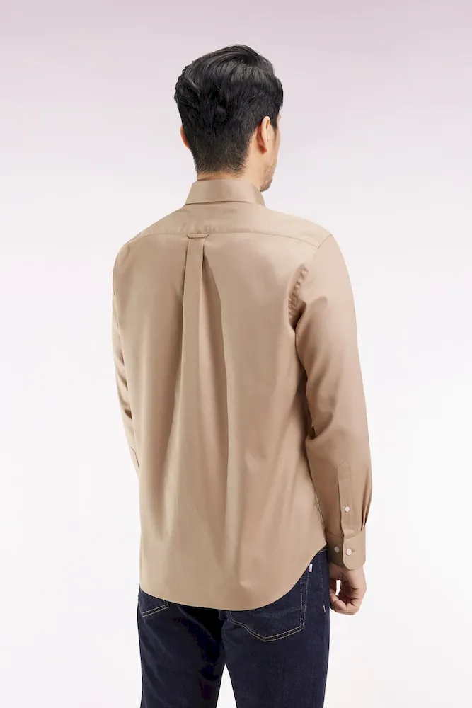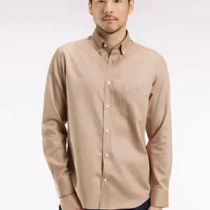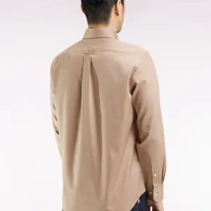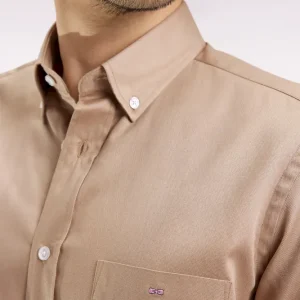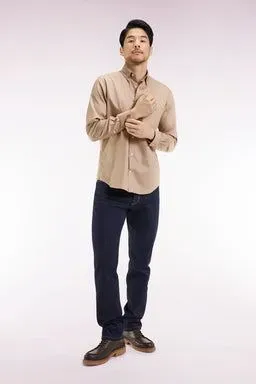 Chemise en coton piqué beige coupe droite