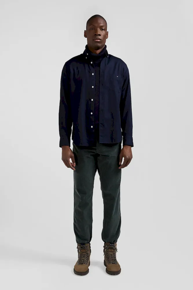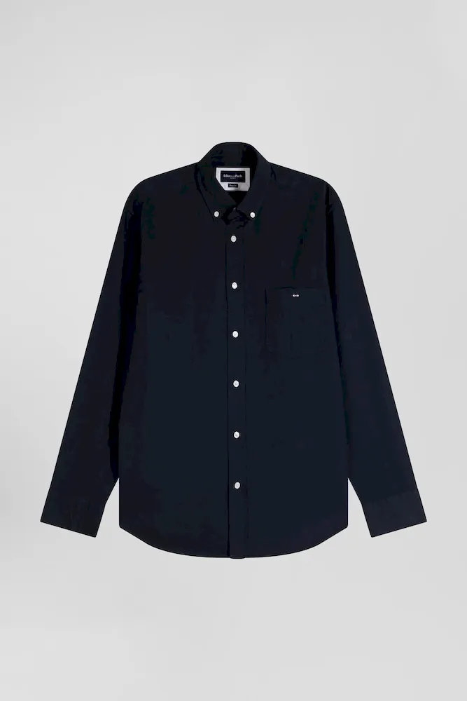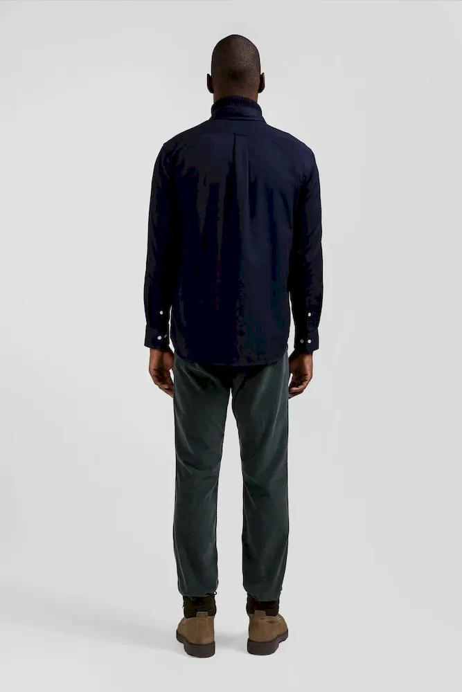 Réalisée avec soin dans une coupe Regular droite, cette chemise unie est confectionnée dans un piqué coton. Sa poche plaquée est rebrodée de notre emblématique nœud papillon rose, signature Eden Park tandis que sa patte de boutonnage classique et son col à pointe boutonné mettent en valeur nos boutons ovales siglés rappelant la forme des ballons de rugby.