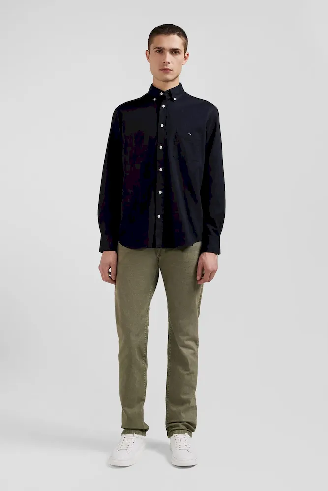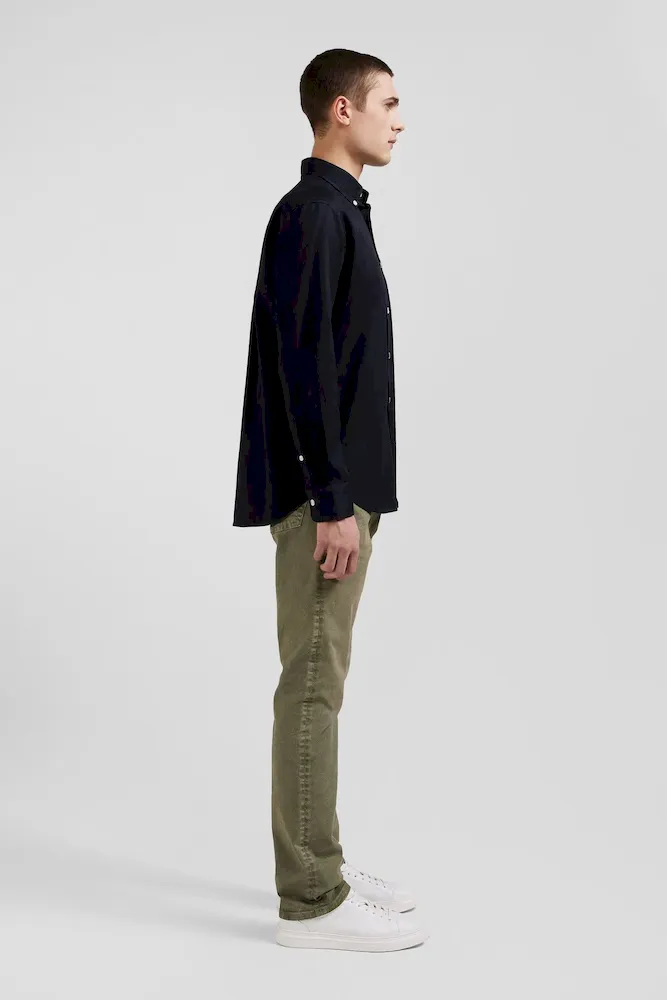 Réalisée avec soin dans une coupe Regular droite, cette chemise unie est confectionnée dans un piqué coton. Sa poche plaquée est rebrodée de notre emblématique nœud papillon rose, signature Eden Park tandis que sa patte de boutonnage classique et son col à pointe boutonné mettent en valeur nos boutons ovales siglés rappelant la forme des ballons de rugby.