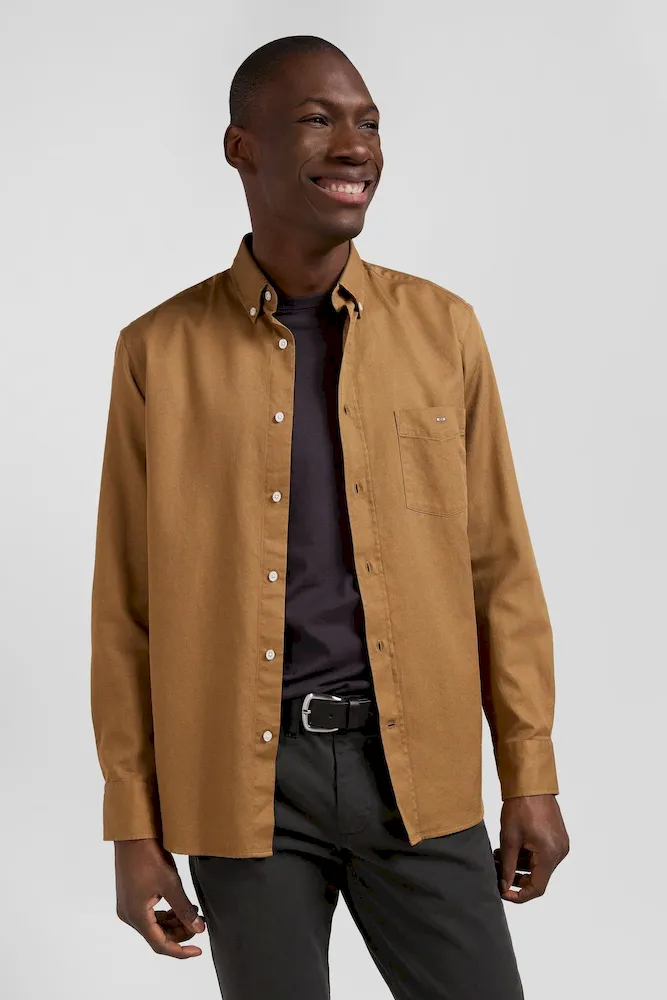 Réalisée avec soin dans une coupe Regular droite, cette chemise unie est confectionnée dans un piqué coton. Sa poche plaquée est rebrodée de notre emblématique nœud papillon rose, signature Eden Park tandis que sa patte de boutonnage classique et son col à pointe boutonné mettent en valeur nos boutons ovales siglés rappelant la forme des ballons de rugby.