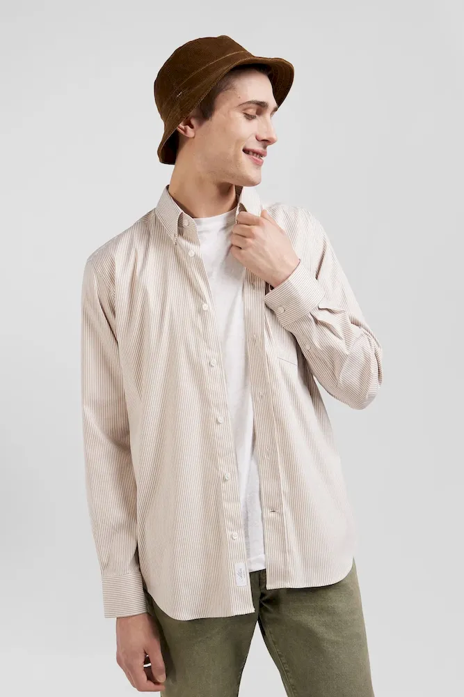 Cette chemise en popeline de coton confortable et élégante arbore des rayures bâtons graphiques pour une allure preppy et une silhouette plus élancée. Cette chemise homme présente une poche plaquée décontractée, un pli dos et un col à pointes boutonnées pour un maintien parfait, ce dernier détail permettant également de mettre en valeur le port de tête masculin. Gage de qualité et de durabilité, cette chemise masculine proposée en plusieurs coloris intemporels est confectionnée dans une popeline luxueuse réalisée en Italie.