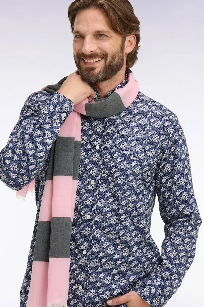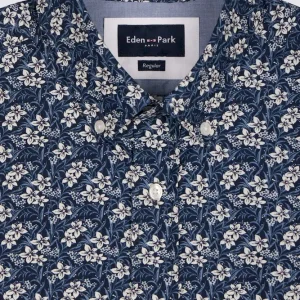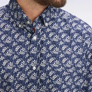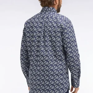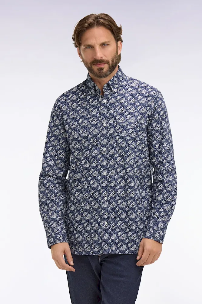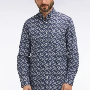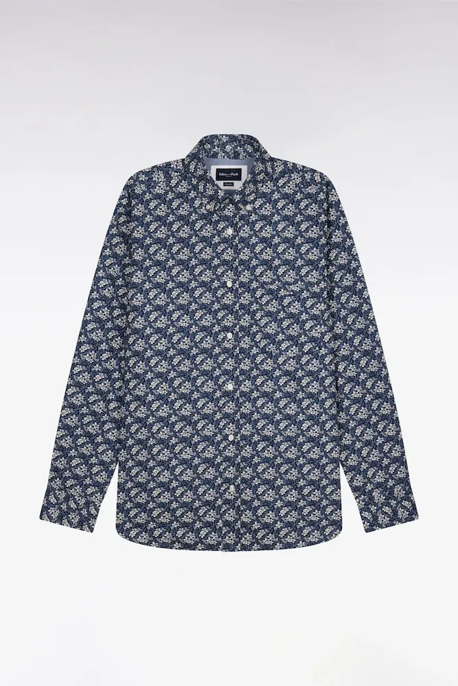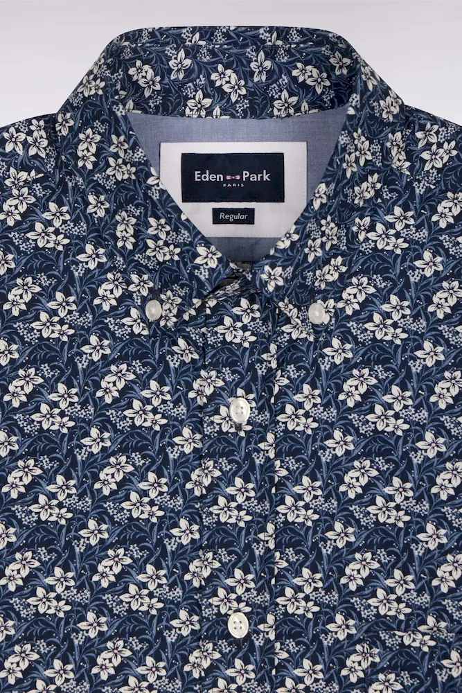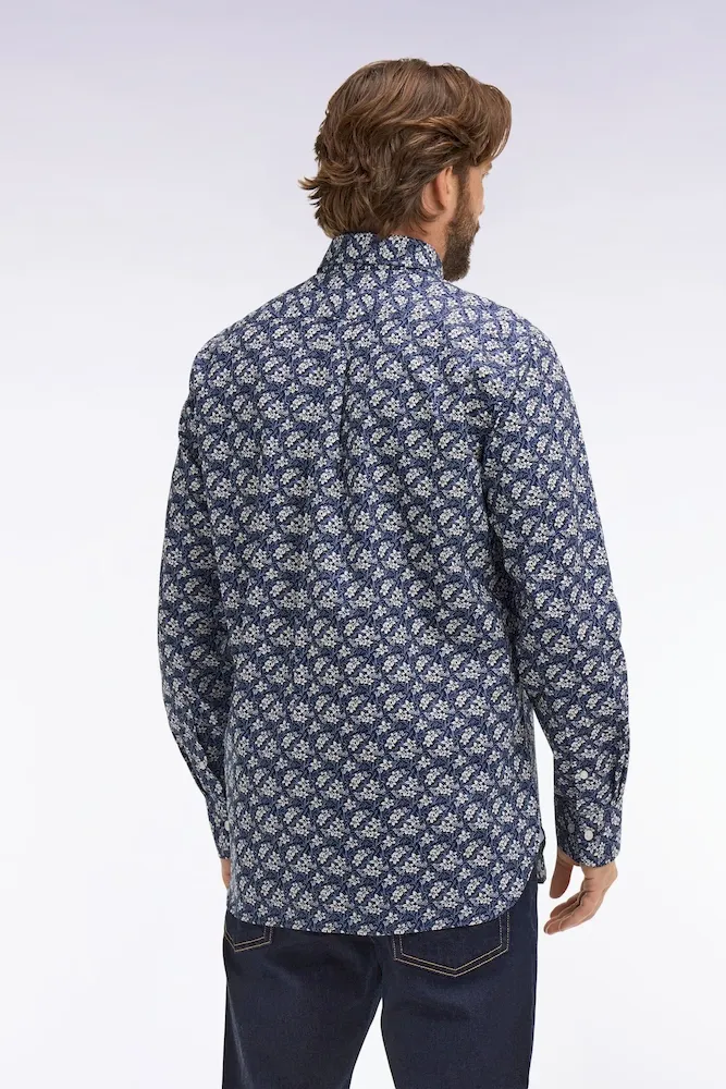 Chemise en popeline de coton bleu à motif floral coupe regular