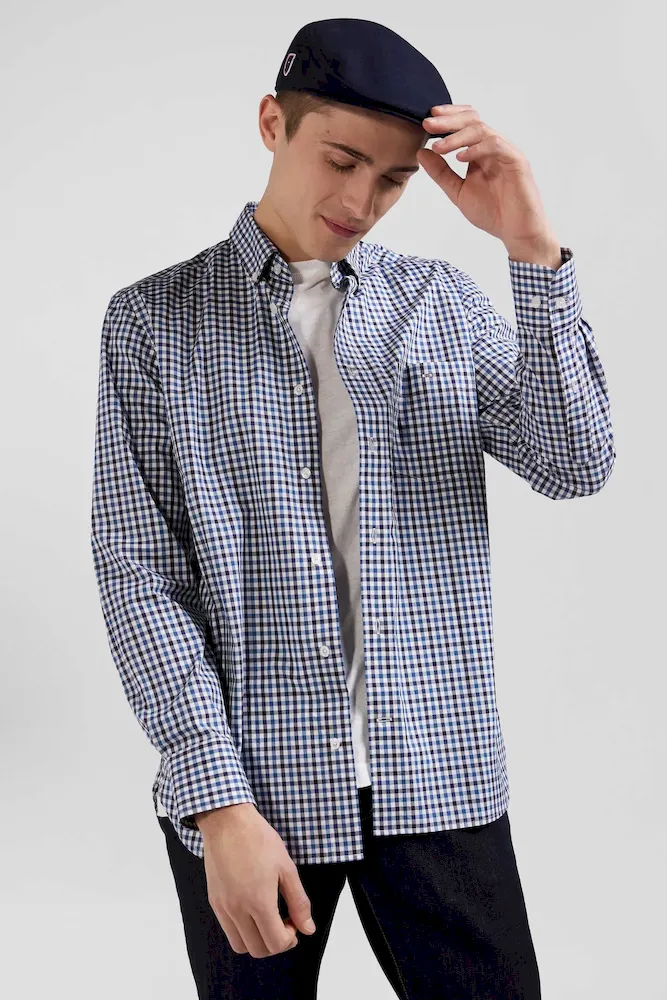 Notre chemise homme en douce popeline de coton est agrémentée de carreaux bicolores. Sa coupe Regular droite assure un confort optimal tandis que sa poche poitrine structure son tombé. Cette chemise à carreaux bicolores offre un mélange parfait de décontraction et de sophistication pour un look qui se démarque avec audace.
