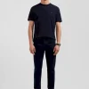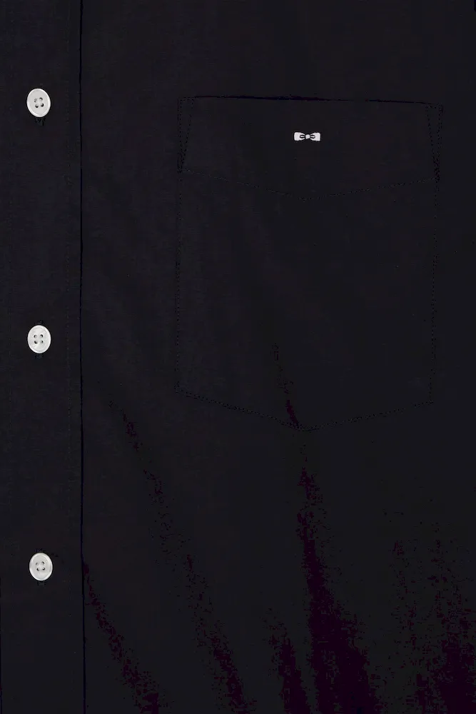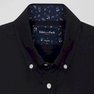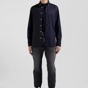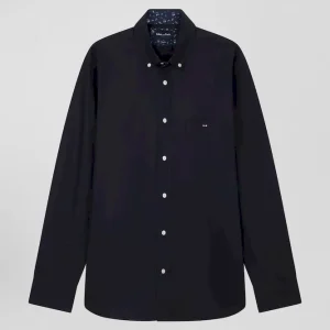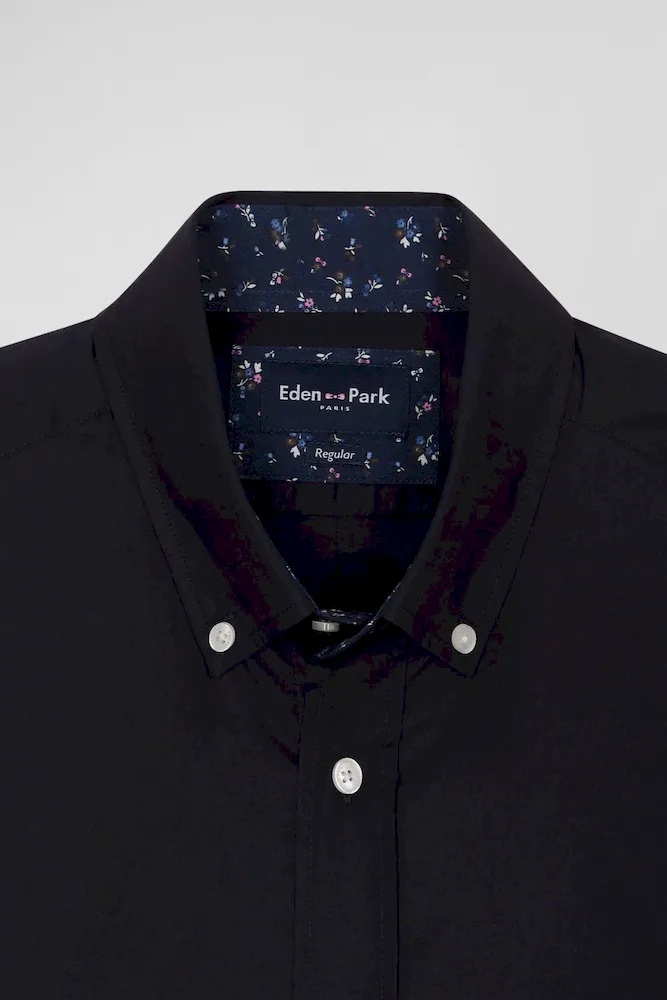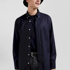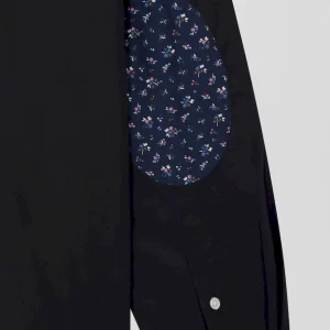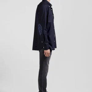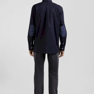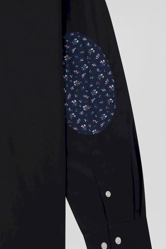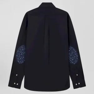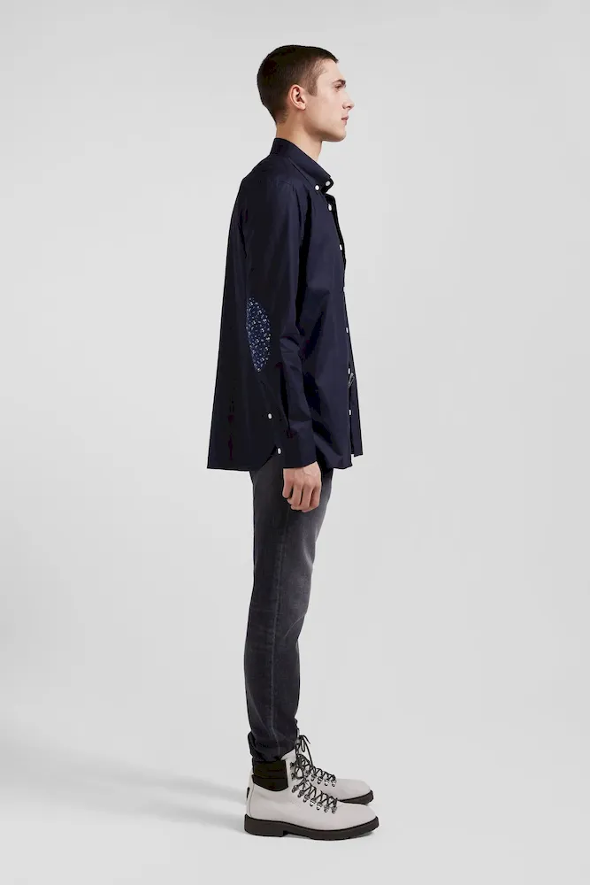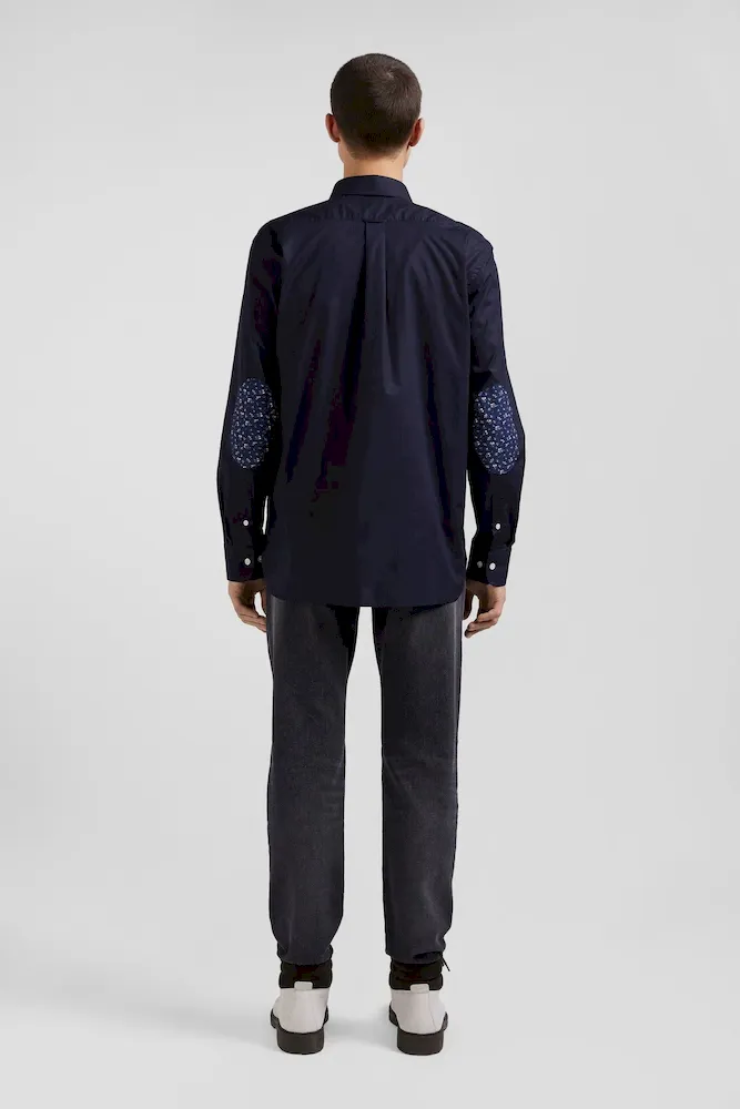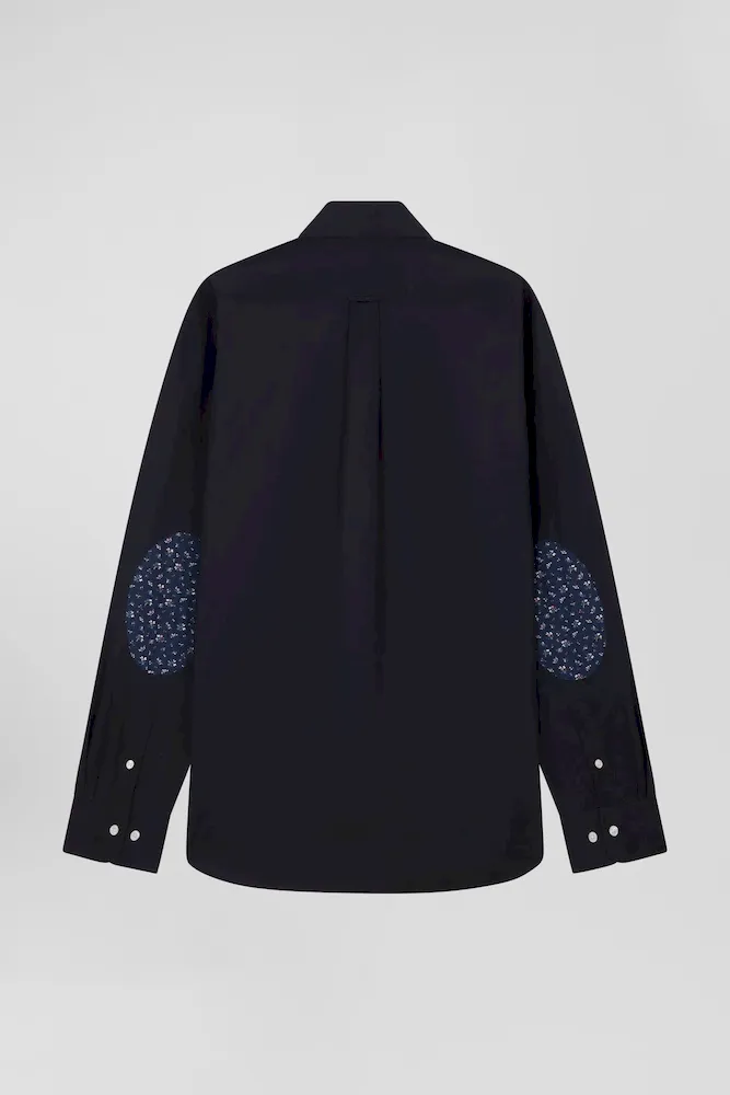 Chemise en popeline de coton bleu marine col boutonné et coudières imprimées coupe Regular