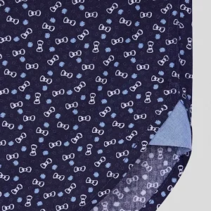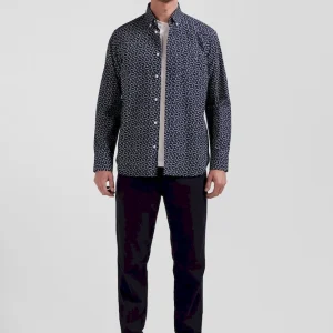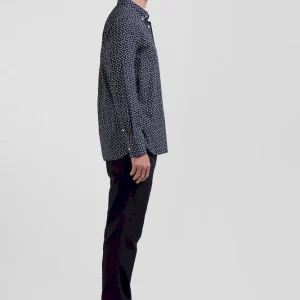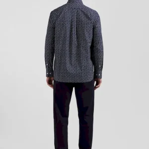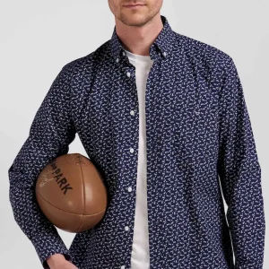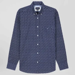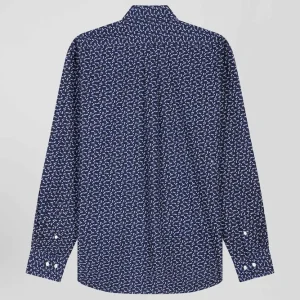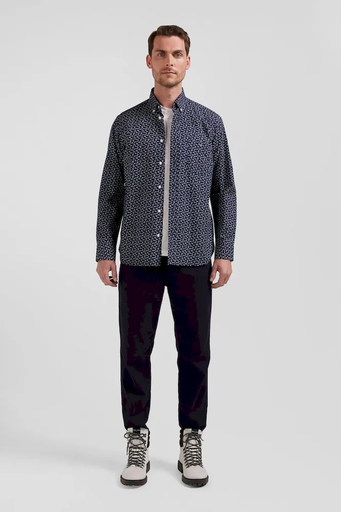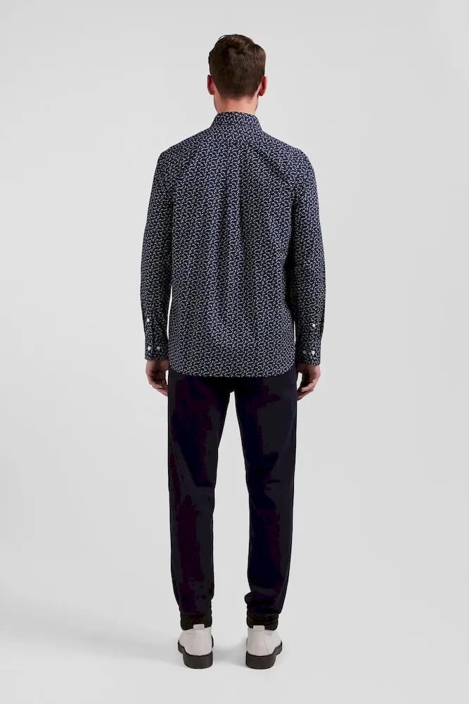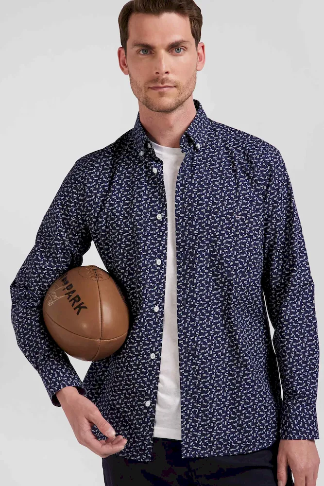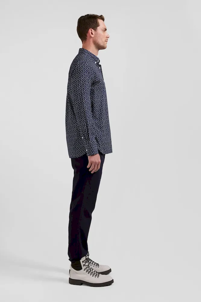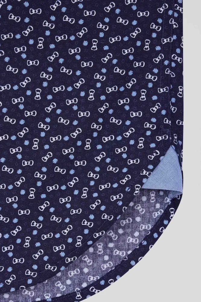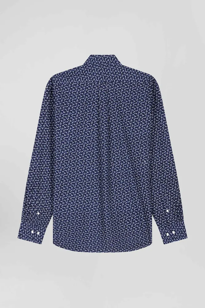 Chemise en popeline de coton bleu marine microimprimé nœud papillon coupe Regular