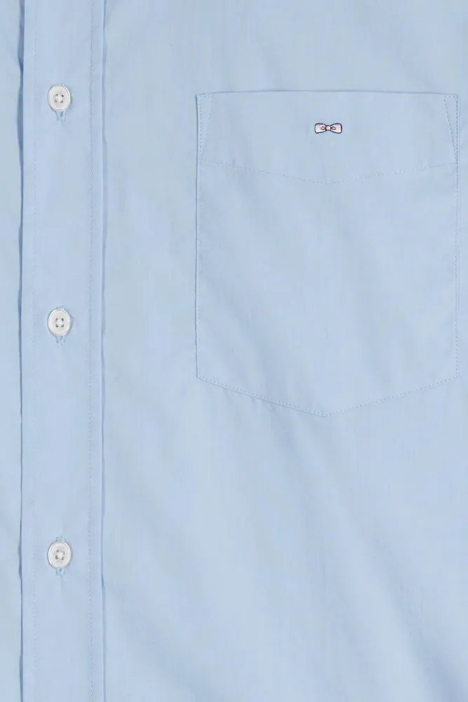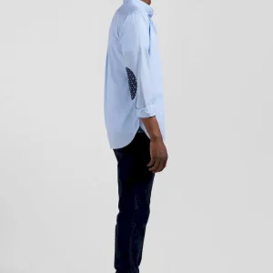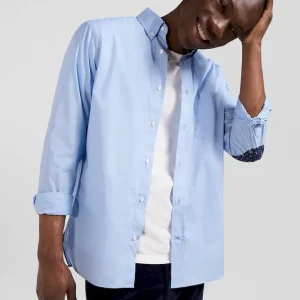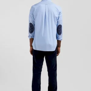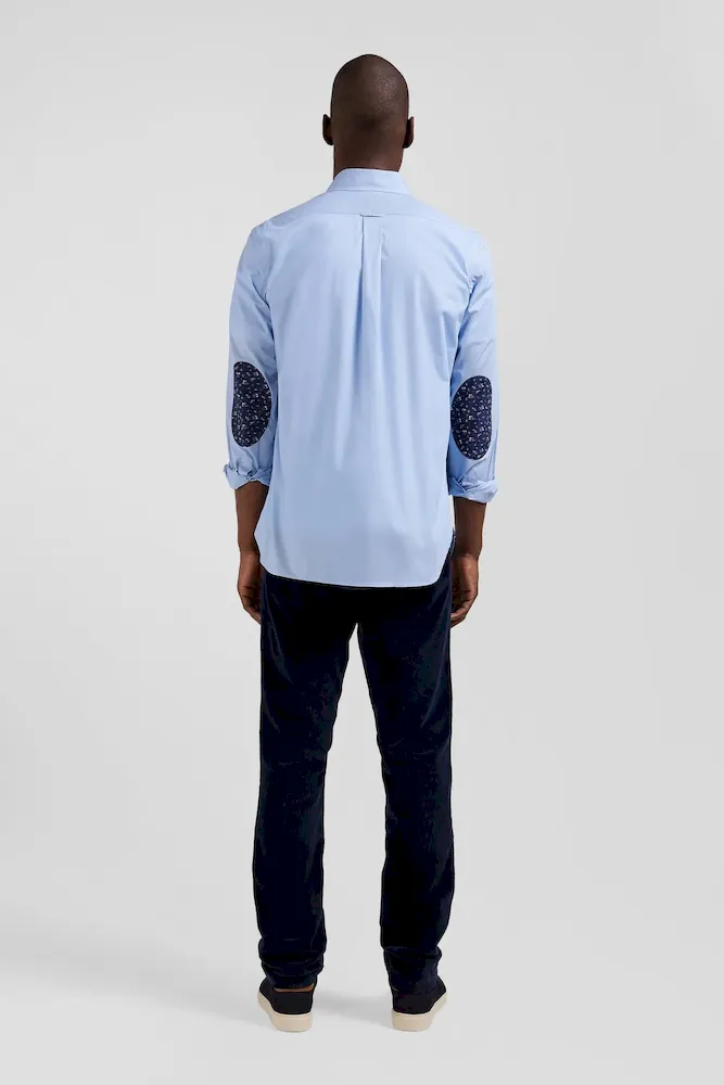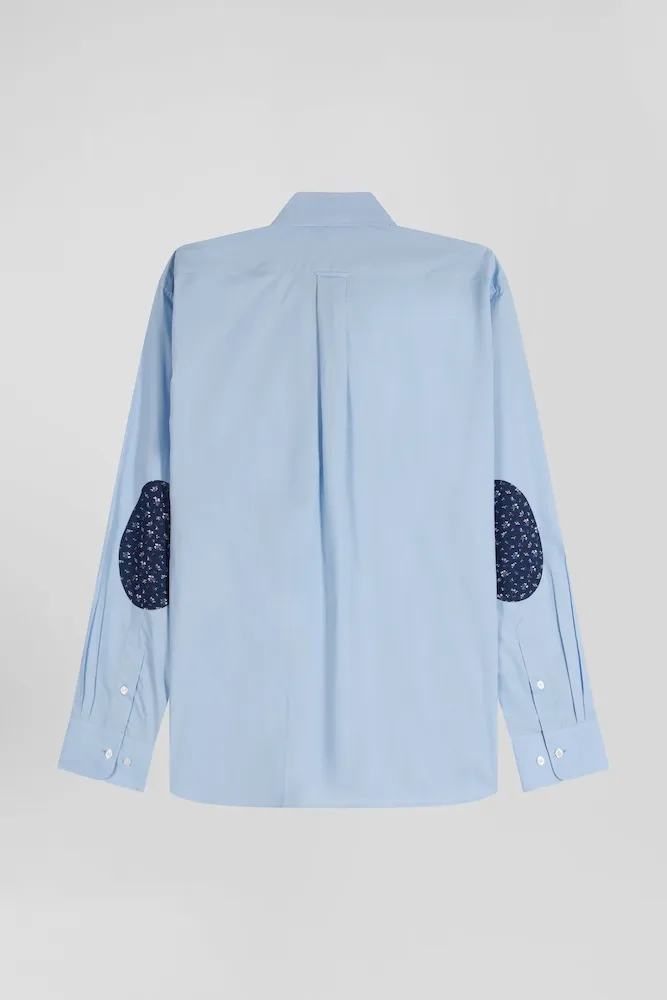 Cette chemise homme à la coupe droite arbore un petit col à pointes boutonnées et des coudières contrastées à l’imprimé floral. Cette chemise en popeline douce à poche plaquée peut aussi être portée en surchemise sur un T-shirt homme.